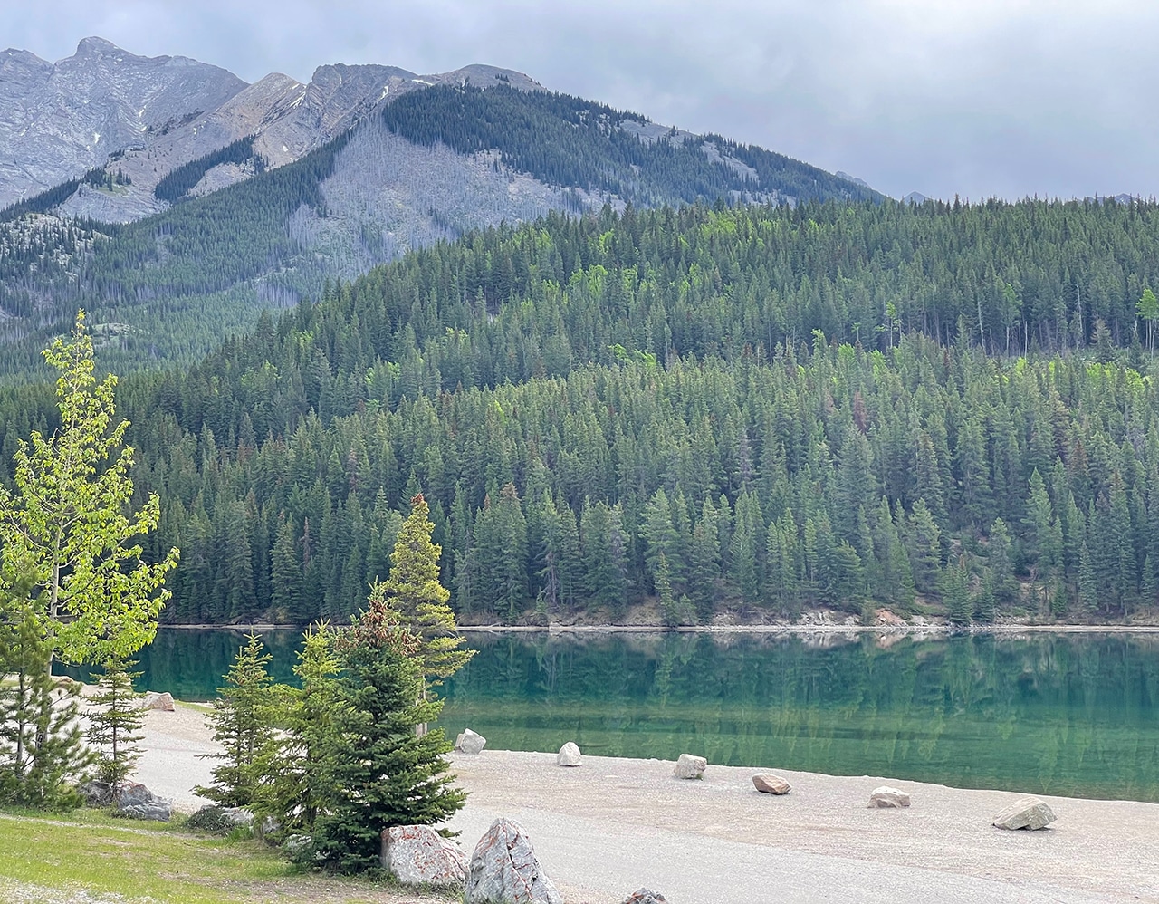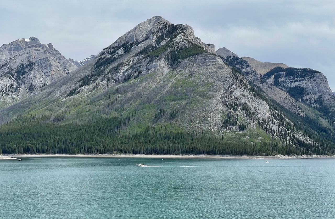 Our last day in Canmore took us along the Minnewanka Scenic Drive, where we crossed off most of our must-sees plus a few more. Wildlife sightings ramped up, we thoroughly enjoyed a boat cruise, and Jim stepped out of his comfort zone for a while.