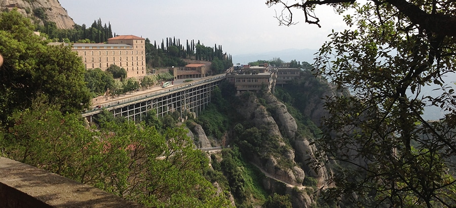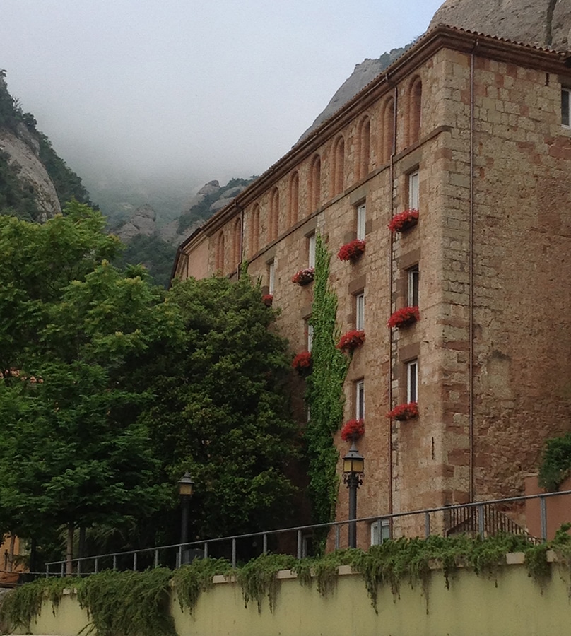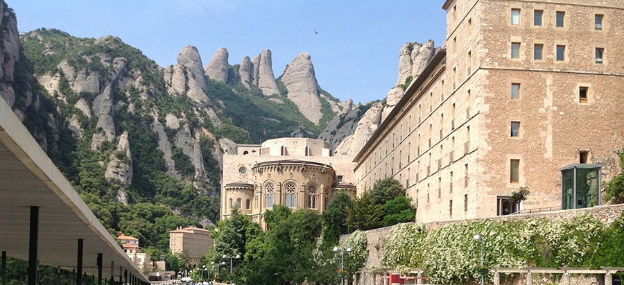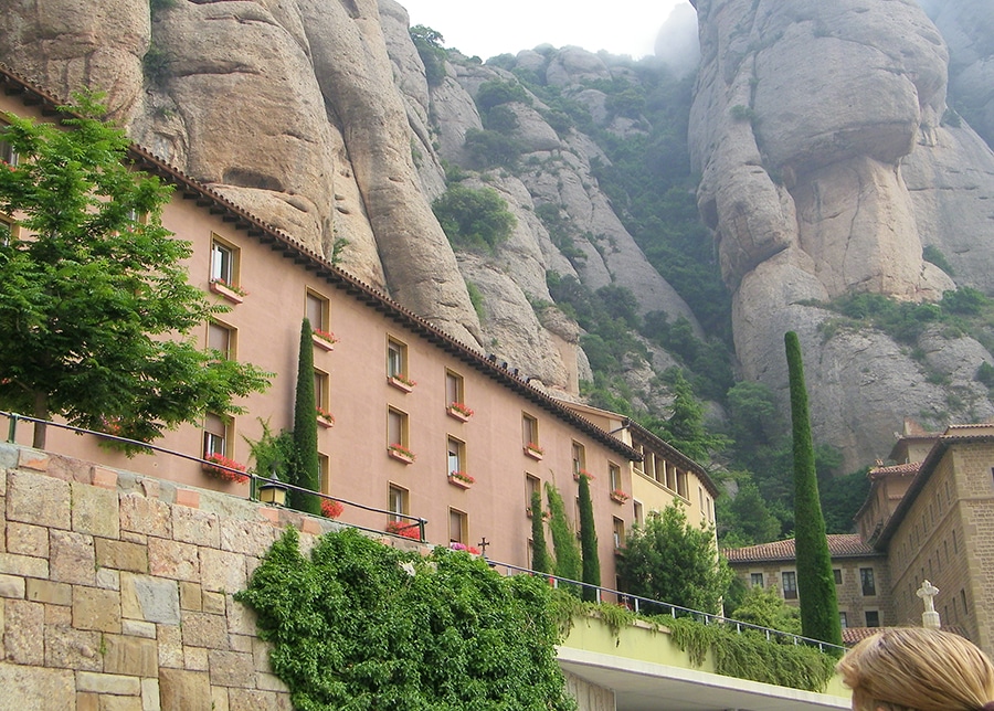 Santa Maria de Montserrat is a Benedictine abbey on the mountain of Montserrat, in Monistrol de Montserrat, in Catalonia, Spain (just west of Barcelona). At 4,055 ft, Montserrat is the highest point in Catalonia and Sant Jeroni is the highest point of Montserrat, where you can see almost all of Catalonia and even the island of Mallorca on a clear day.