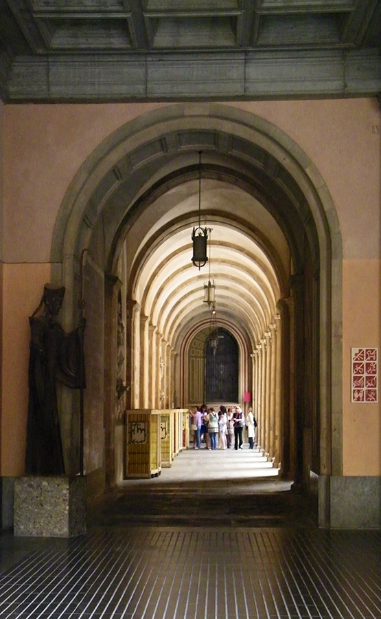 The four trees in the small garden in front of the cloister (above, left) refer to the Virgin Mary. The palm symbolises beauty; the olive tree – peace and fertility; the cypress – silence and prayer (as it reaches to the sky); and the laurel is the symbol of honor. Without the tour, they just would have been a nice grouping of trees to us. With the tour, we saw that nothing is random here. Everything has meaning.