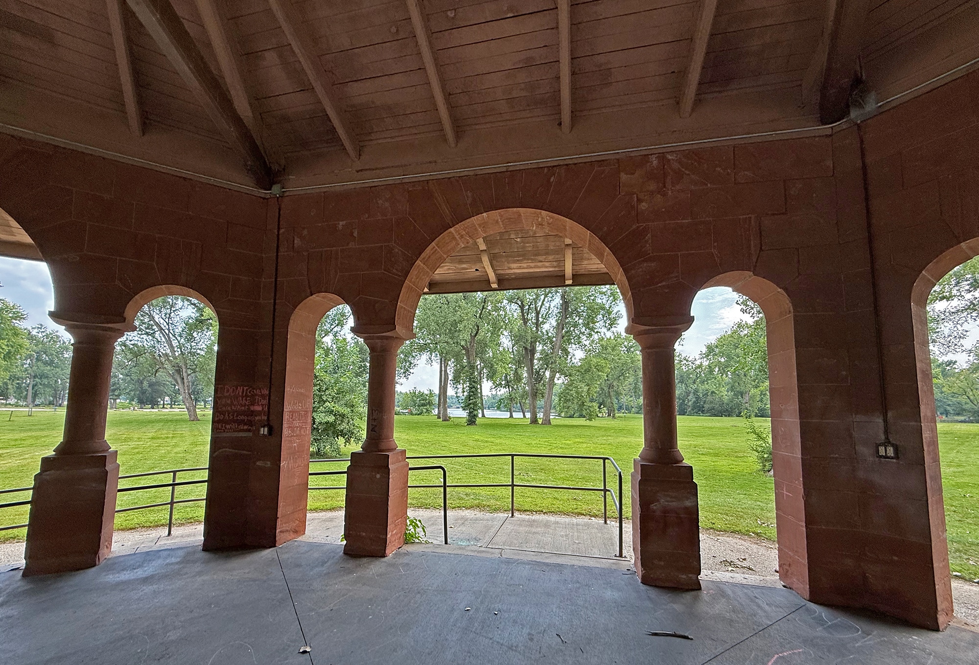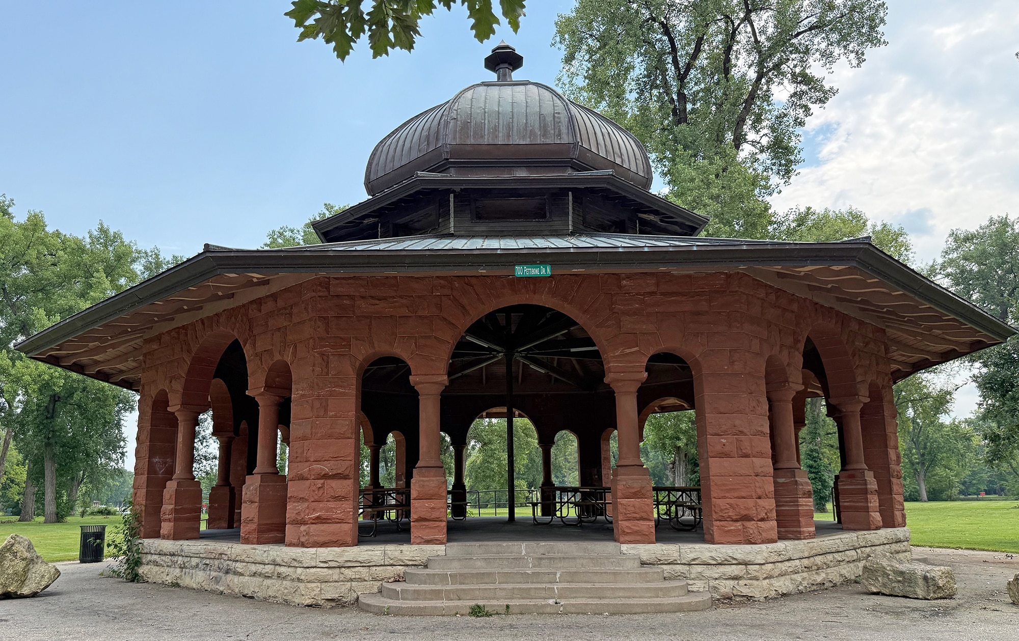 As our paddleboat passed by Pettibone Park earlier this morning (on what we thought was the Minnesota side) our tour guide pointed out its wonderful pavilion and said the park is actually on an island… in Wisconsin. Originally called Barron Island in Minnesota, Alonzo Barron wanted to develop an island city in 1857. Because the island was so wet and marshy, he was never able to complete his mission.