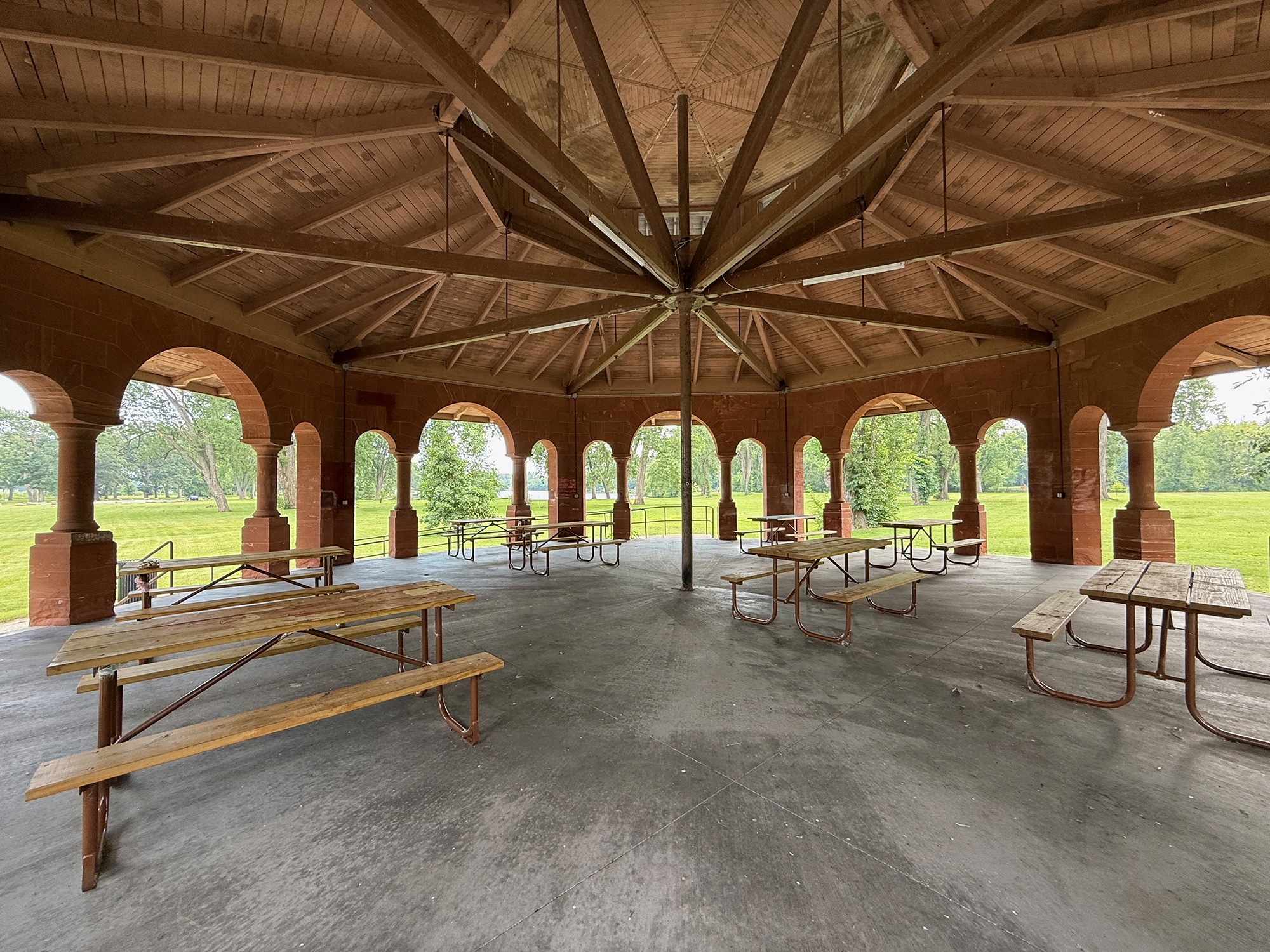 So now you know why we had to visit Pettibone Park and see this wonderful park and its pavilion! On our way in we made a stop to check out its beach and beach house, and a place to rent canoes and kayaks. We wound our way back through a portion of its 230 acres with lovely picnic/play/camping areas and plenty of green space, trees, and (Mississippi) water all around.