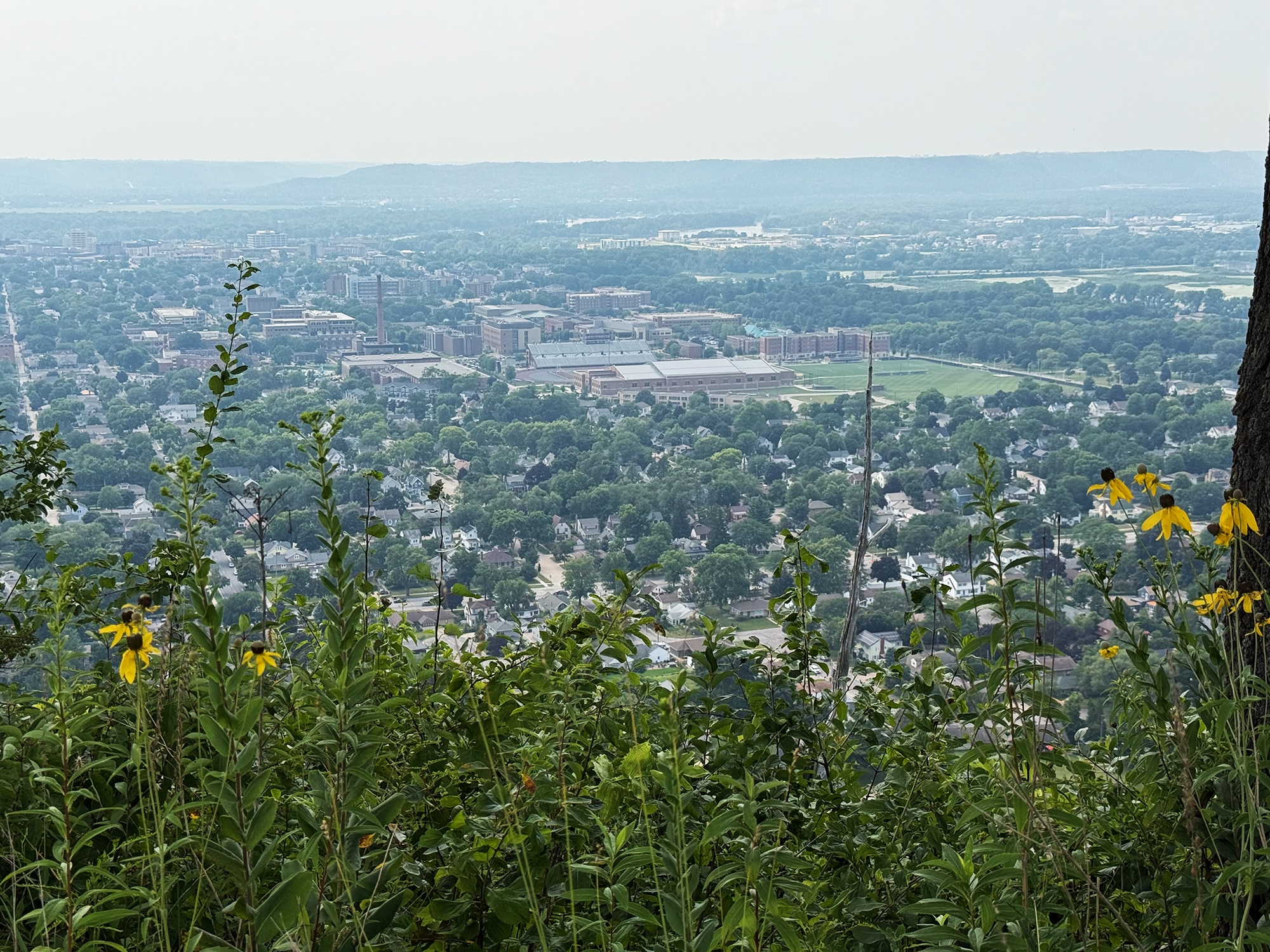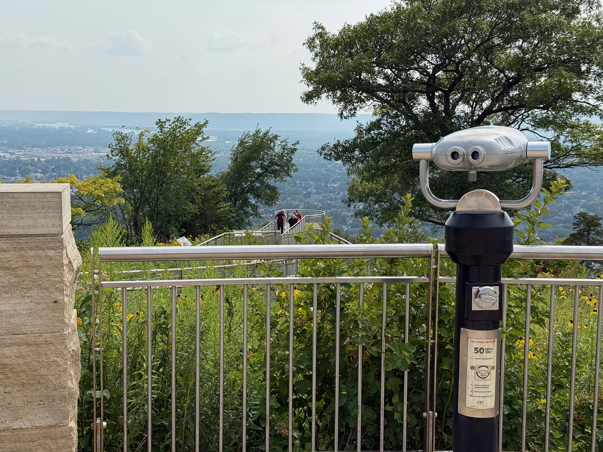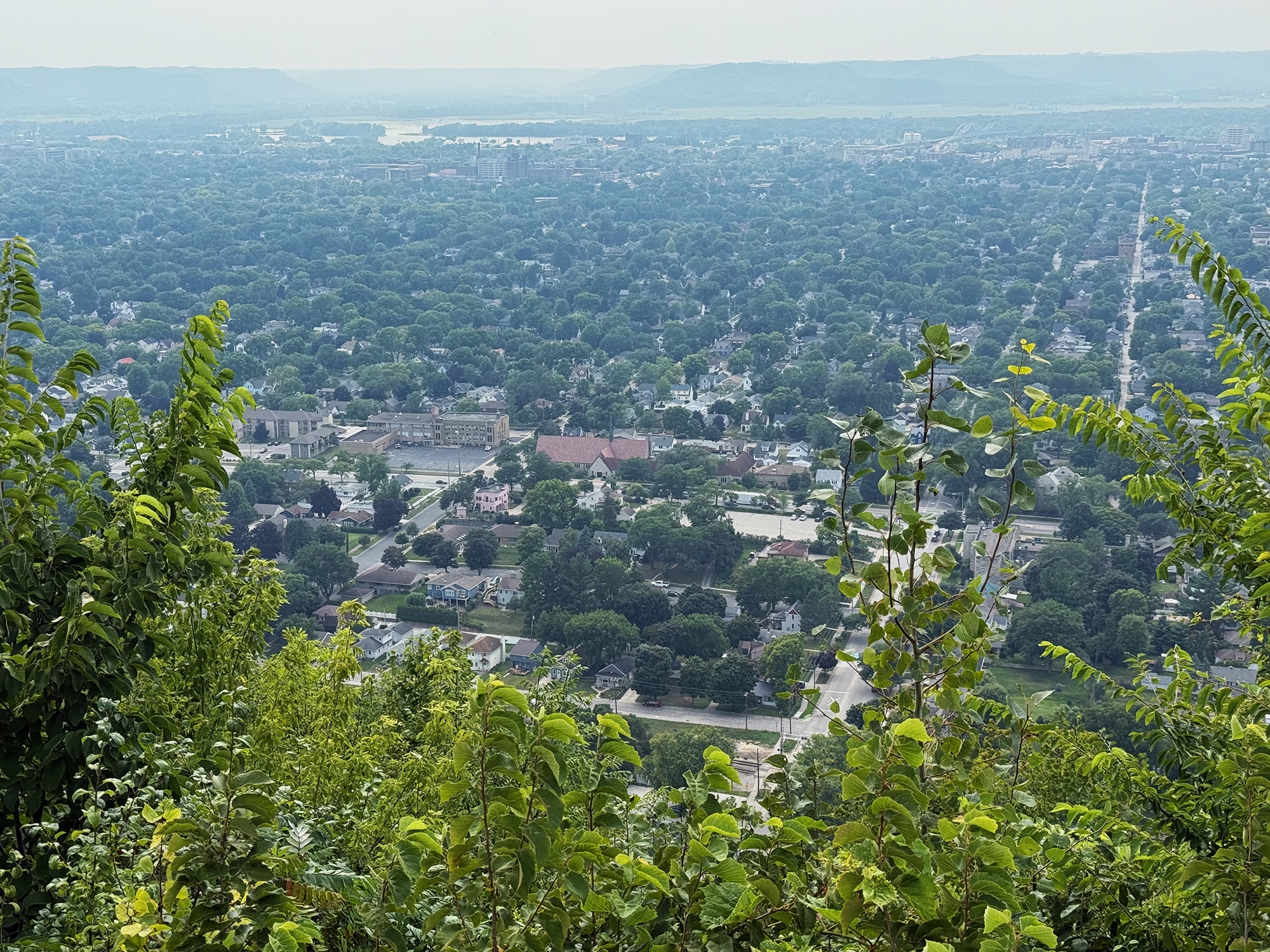 A short thirteen-minute drive from our hotel, Grandad Bluff is considered “the most scenic view in the state.” This 600-ft high bluff overlooks the city of La Crosse, and the view of the Mississippi River Valley includes three states: Wisconsin, Minnesota and Iowa. On a clear day without the fire haze in early August of 2025, it would have been even more fantastic!