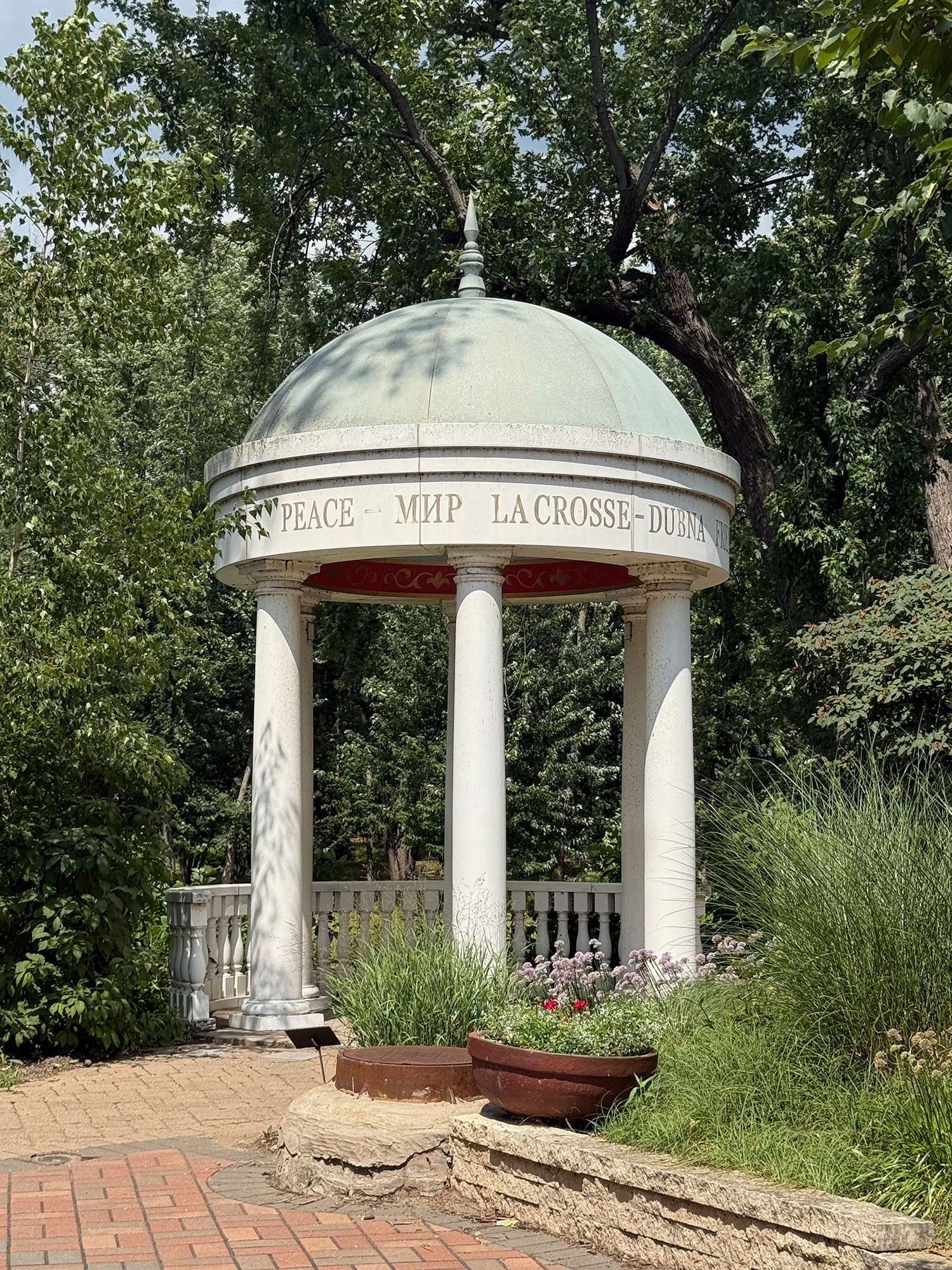 Right on the bank of the La Crosse River where it converges with the Mississippi and Black Rivers (by where our paddleboat was docked), this lovely park was pretty sweet! Click on the link just above and then click on the Gardens tab for some information about each country’s garden and its inspiration for this park.