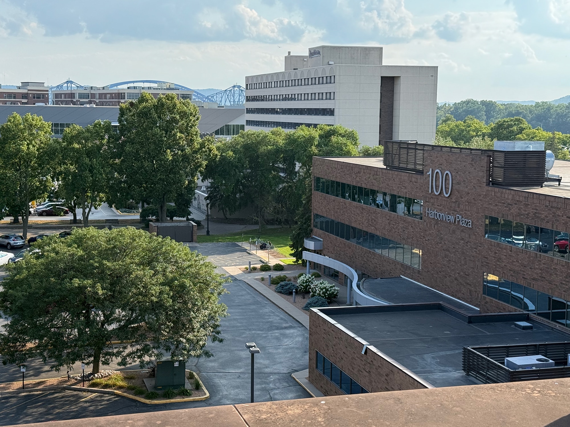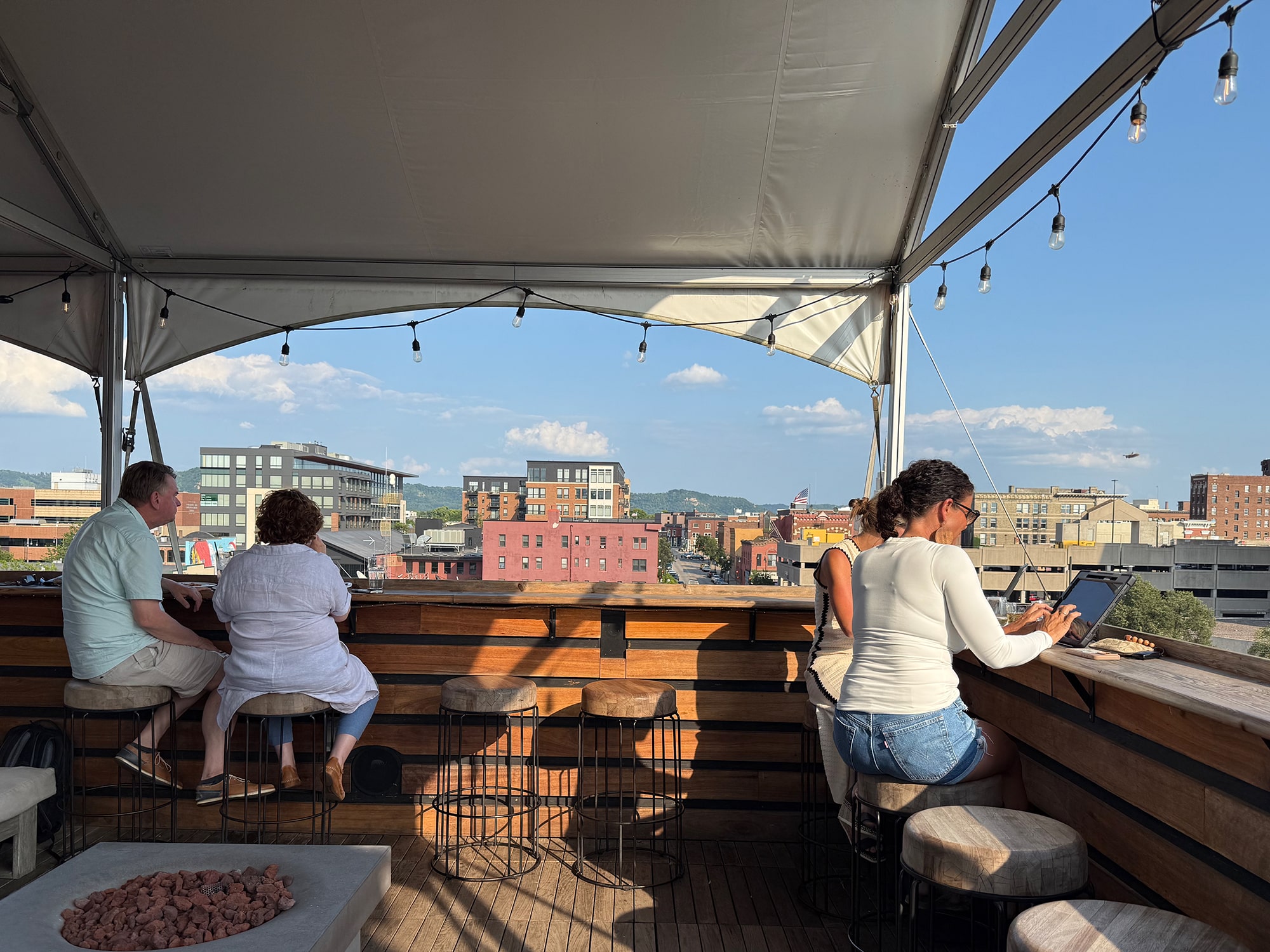 When we asked our bartender what her favorite restaurants were in La Crosse, we decided to walk across a couple more parking lots to the Charmant Hotel to check out their rooftop terrace and enjoy a great finish to another perfect day in La Crosse! The wood-fired pizza was fantastic! In the third photo you can see we don’t have far to walk to our hotel – the white building across a couple more parking lots.