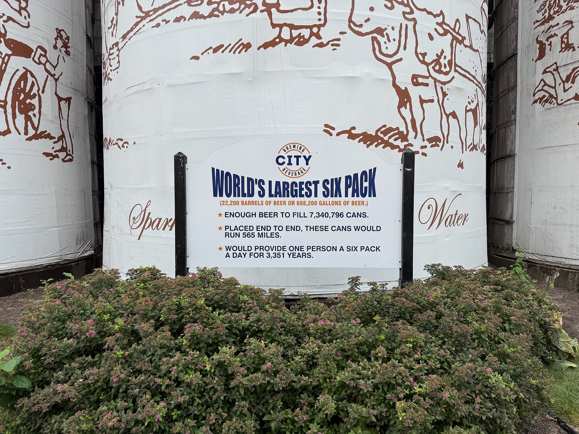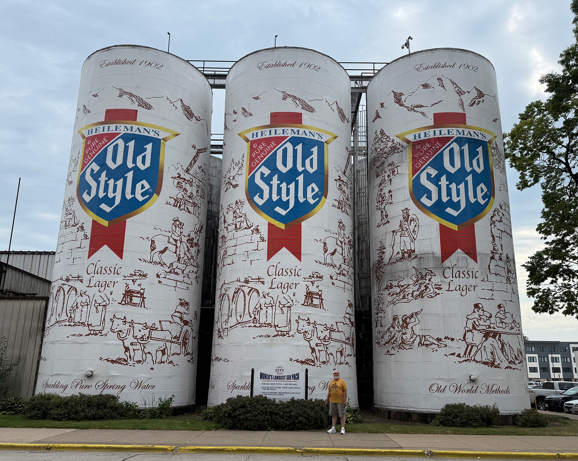 “In 1969 the G. Heileman Brewery [currently City Brewing Company], built six 54-foot-tall storage tanks at its plant in La Crosse, Wisconsin. Whether by design or a bolt of beer-fueled inspiration, the tanks were painted a year later to resemble cans of Heileman’s Old Style Lager, and the sextet was proclaimed the “World’s Largest Six Pack.” Images of the sixer traveled the globe on postcards sold in the Heileman gift shop, which was part of the brewery tour.” ~ READ MORE about the changes to the six pack over the years.
