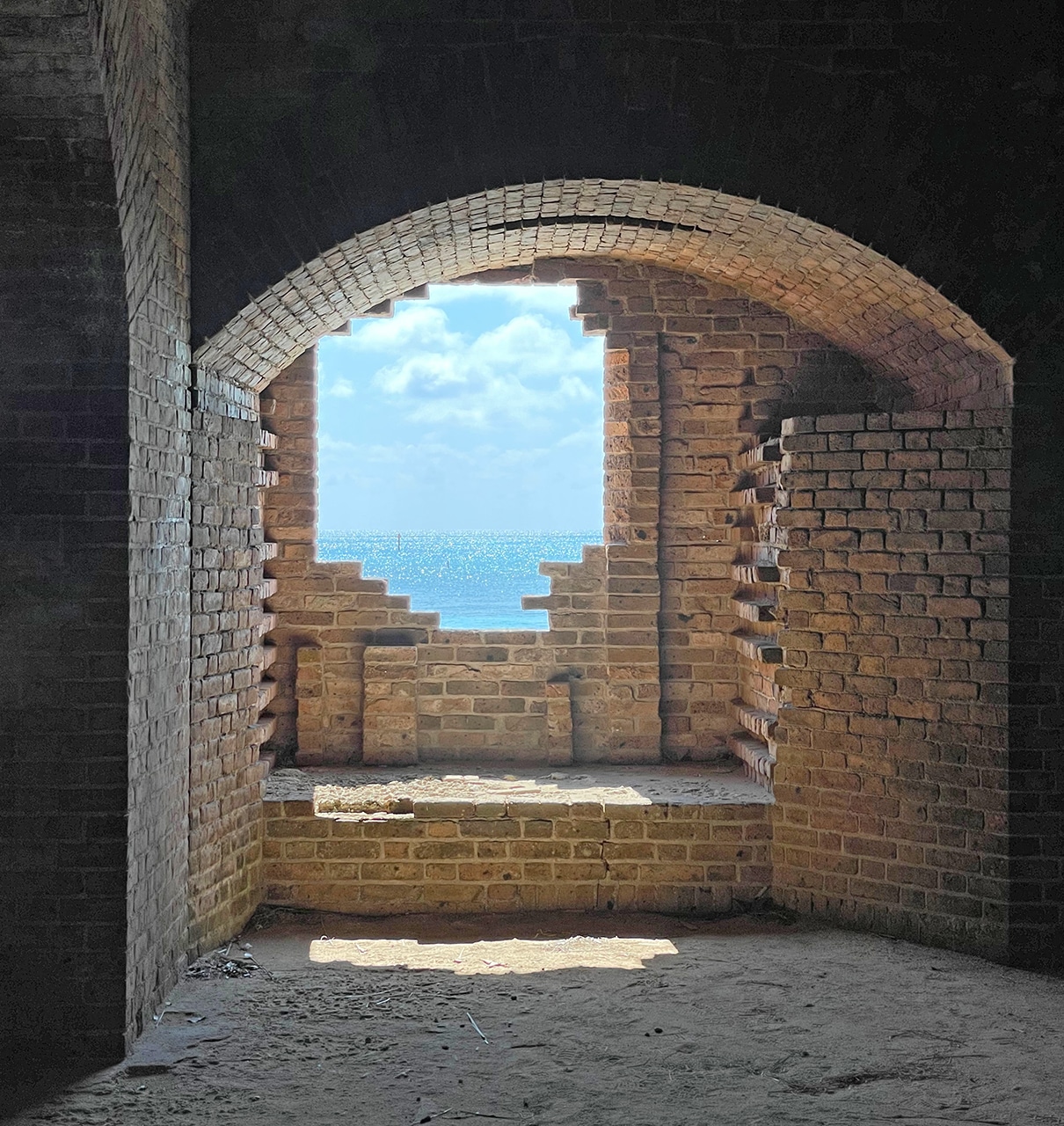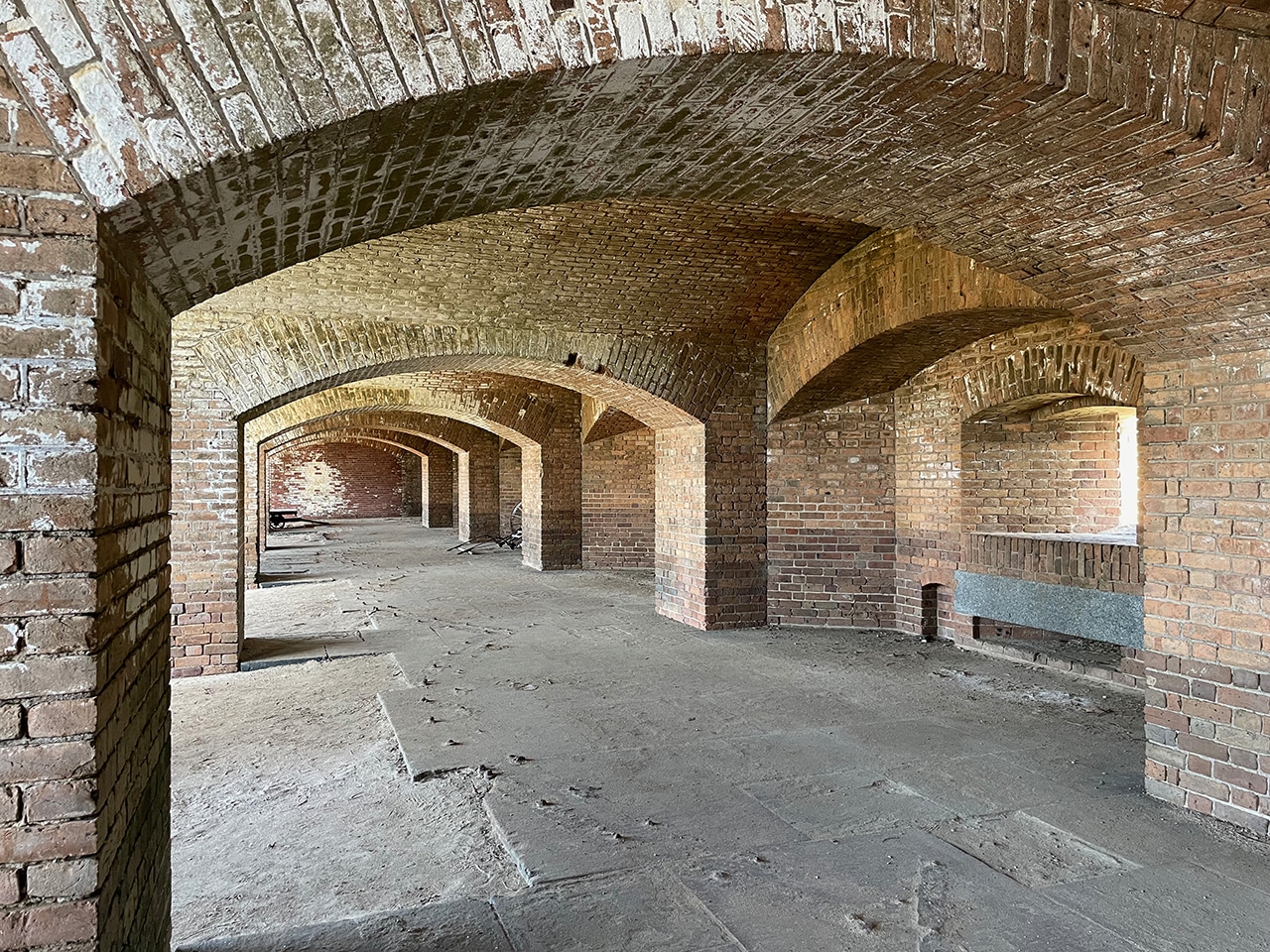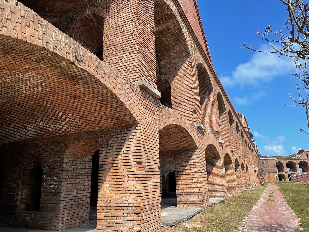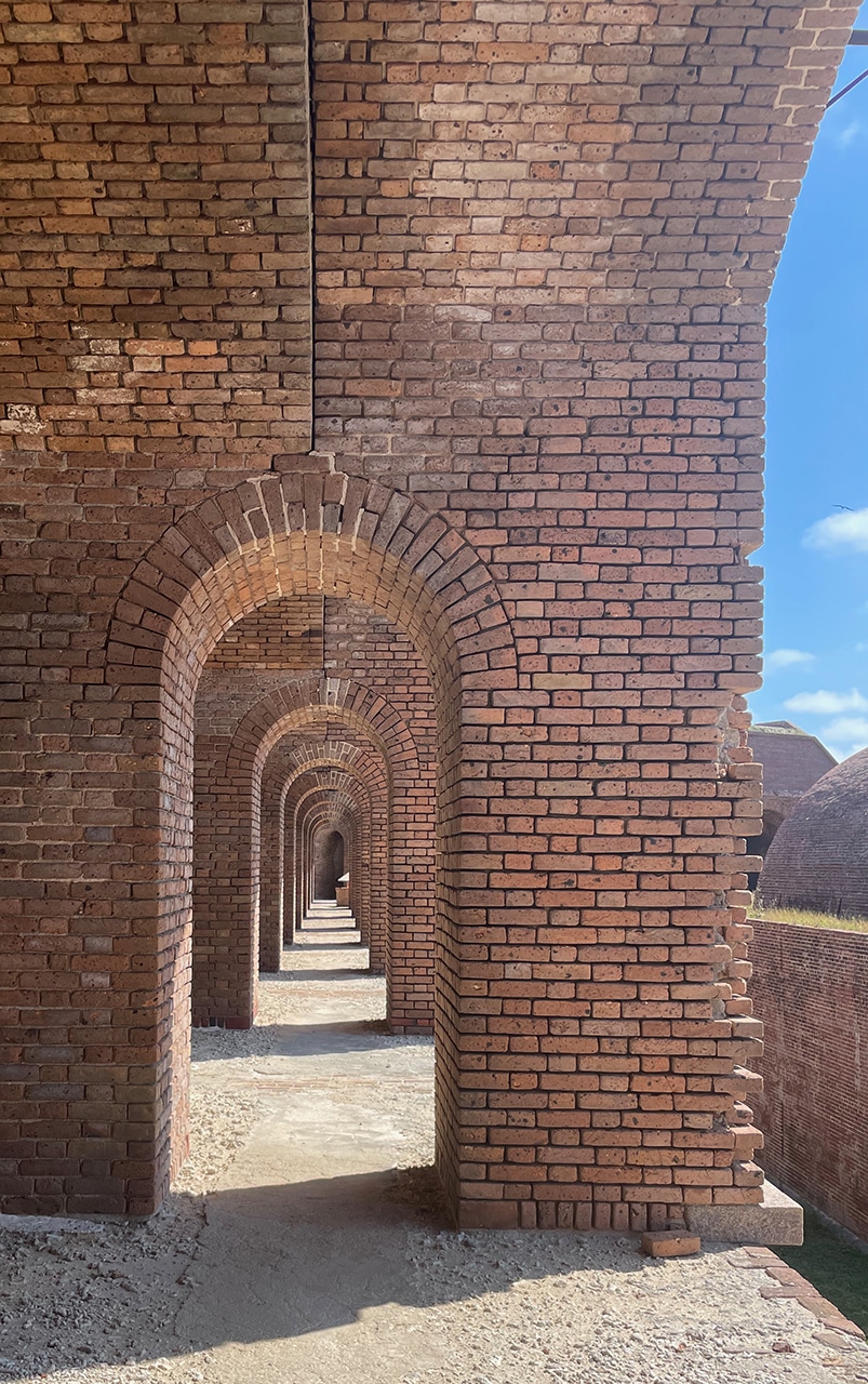 Fort Jefferson is constructed of 16 million handmade red bricks. After the War of 1812, “Fort Jefferson was built to protect the southern coastline of the U.S. and the lifeline of commerce to and from the Mississippi River.” This fort was planned to be the greatest of all forts built from Maine to Texas to keep this country safe.