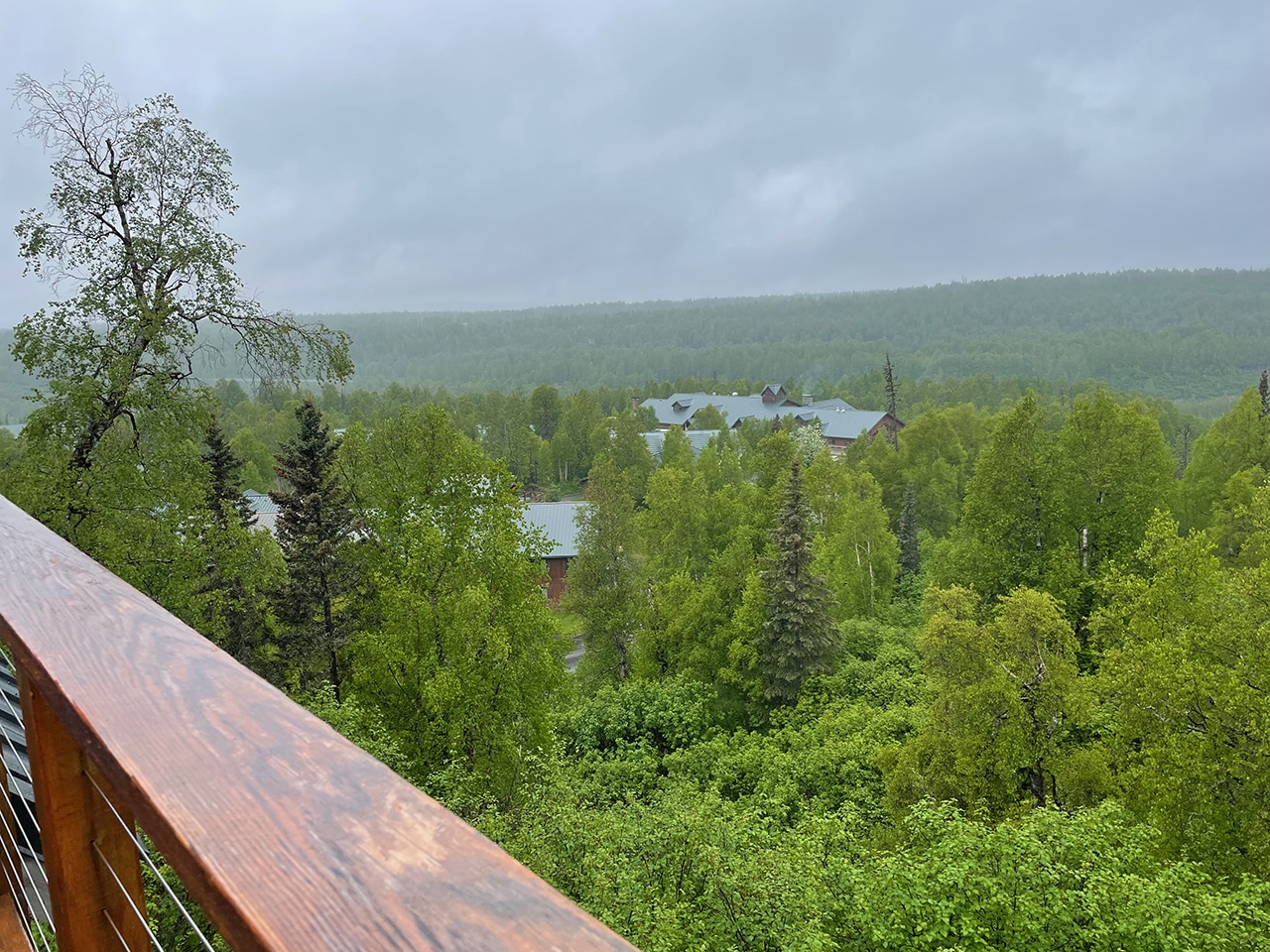 It was great to finally arrive after the long drive to the Mt. McKinley Princess Wilderness Lodge, which was absolutely beautiful! From the fabulous deck we could have had a great view of Denali, but it was socked in. We still have a chance tomorrow morning, so we have to stay positive!