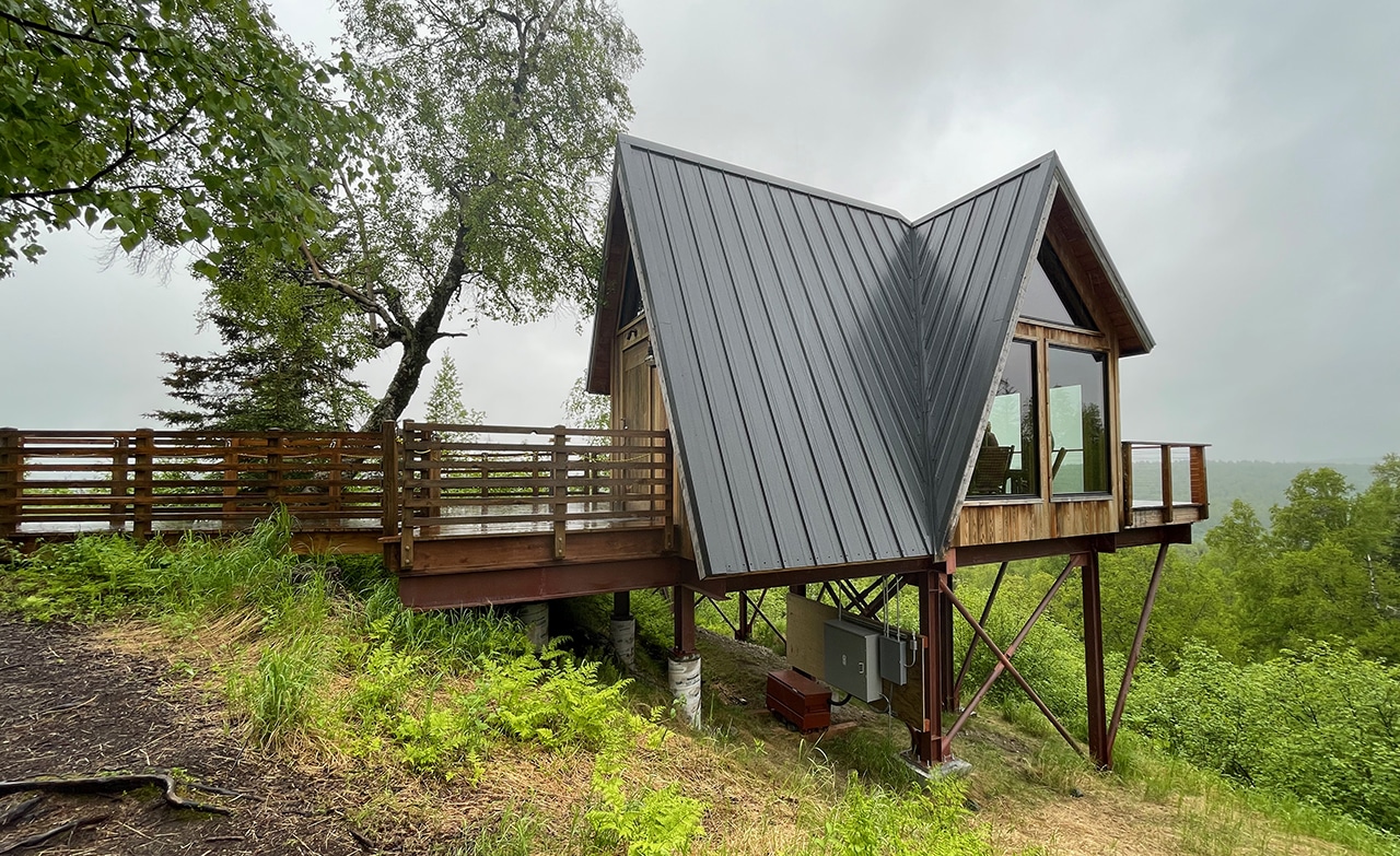 After we returned back to our Lodge, I took a soggy/rainy walk uphill to a Treehouse designed and built by Pete Nelson of Animal Planet’s Treehouse Masters. It was very cool, but one of its most important features was its whole new perspective of Denali – which was still socked in. But as treehouses go, this one was very cool! I guess we’re going to have to come back and spend more than just one night here to see if the elusive Great One will actually make an appearance.