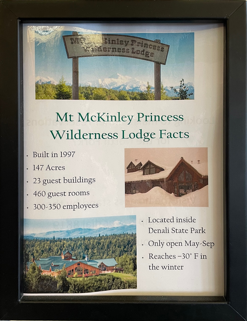 In one area of the lobby there were several displays to learn about “The Great One” and the history of climbing the highest mountain in North America. With only one night here we couldn’t take advantage of any activities offered by the lodge which could have been interesting. Naturalists provide knowledge and insight into all things Alaska, including the flora & fauna, Alaska geology, and state and national park information.