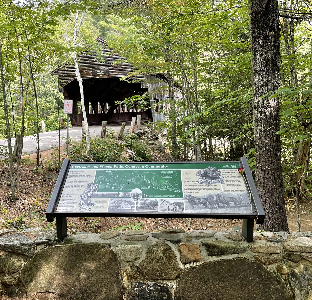 The Cold River may look tame and babbling in the pictures below, but imagine how difficult and dangerous it would have been to cross during spring floods – when it was raging! There was definitely a need to safely get farm wagons across rivers to transport goods to market. Rather than standard specifications like we have today, early bridges were sized to “a load of hay high and a load of hay wide.”