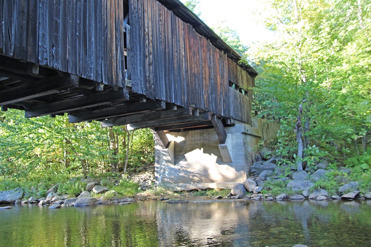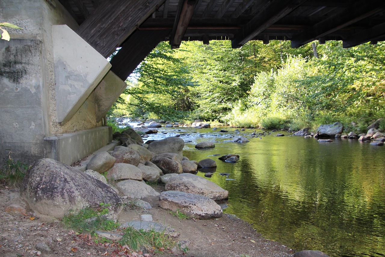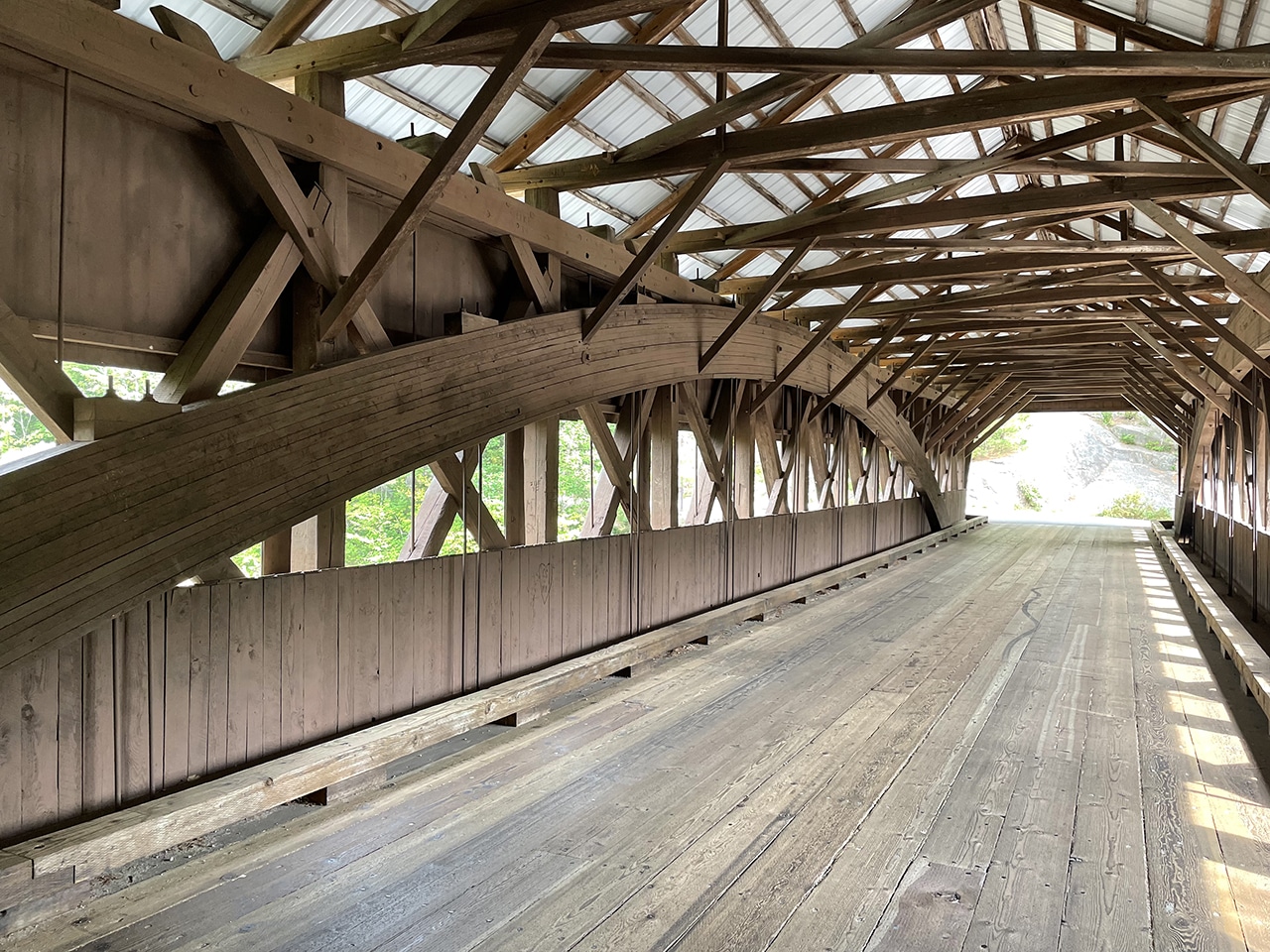 Like the human body, the inside of a centuries-old covered bridge contains its framework and the outside shows its age (or maintenance budget). Under the bridge is a good place to find its heart and imagine what it has lived through – above the ever-changing flow of a river.