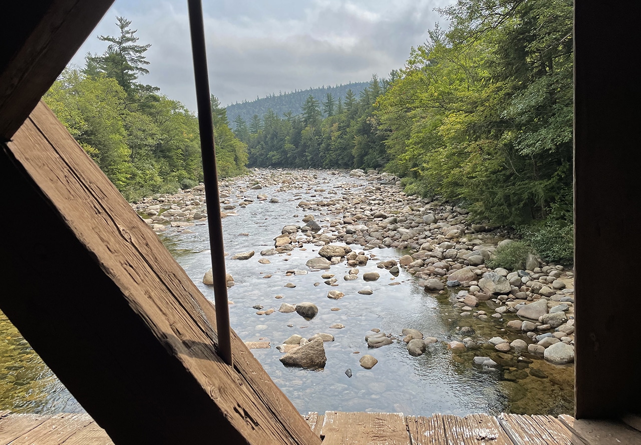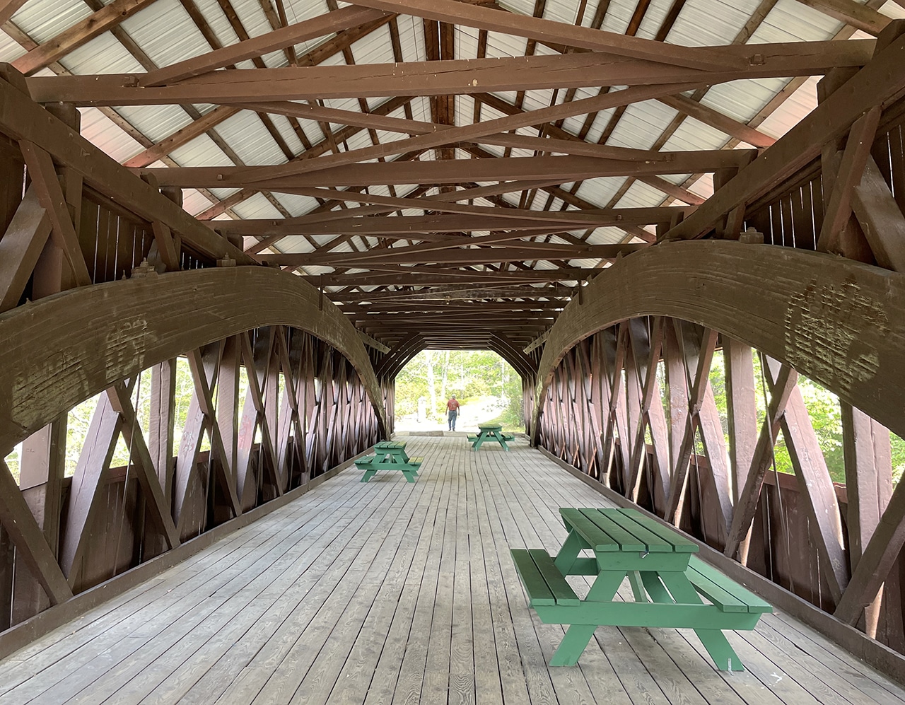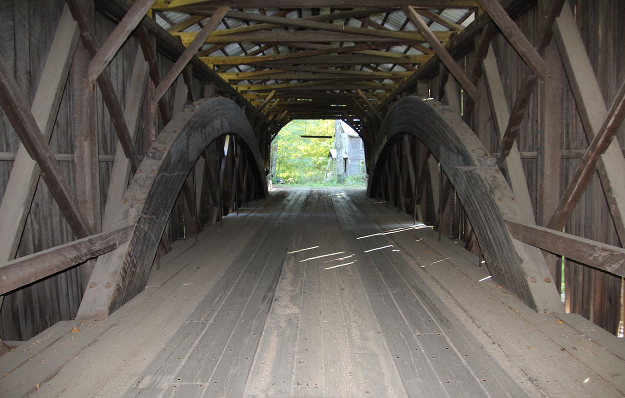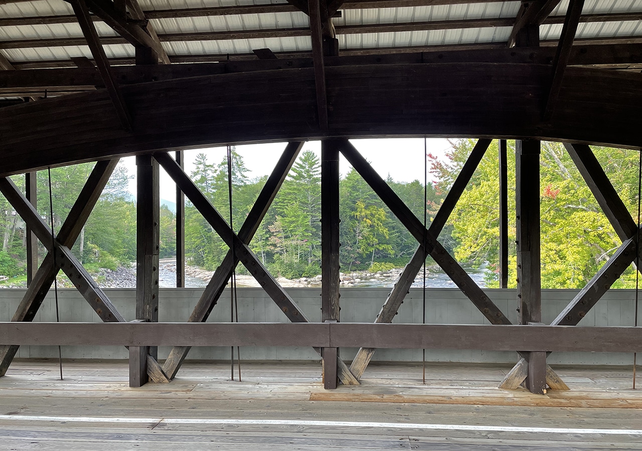 Like the human body, the inside of a centuries-old covered bridge contains its framework and the outside shows its age (or maintenance budget). Under the bridge is a good place to find its heart and imagine what it has lived through – above the ever-changing flow of a river.