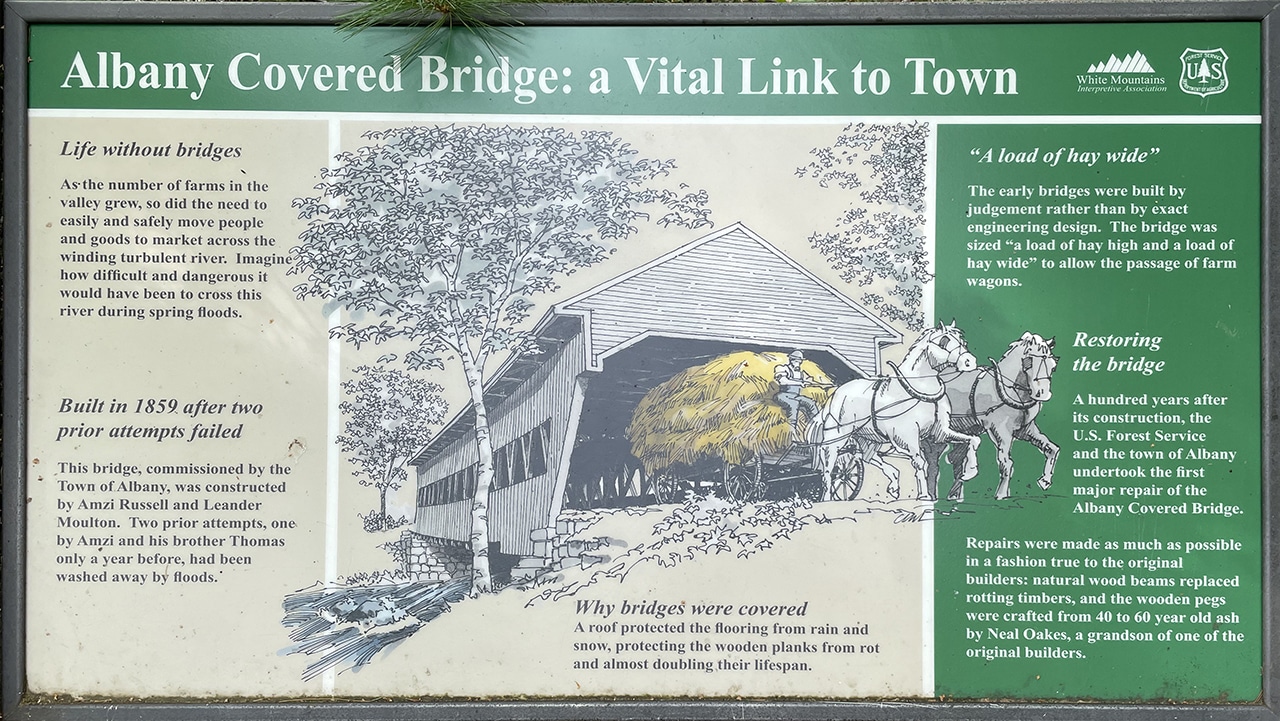The first bridge on this site was built in 1857 and was destroyed by floods a year later. The U.S. Forest Service and the town of Albany have tackled many projects over the years to keep this bridge in great condition.