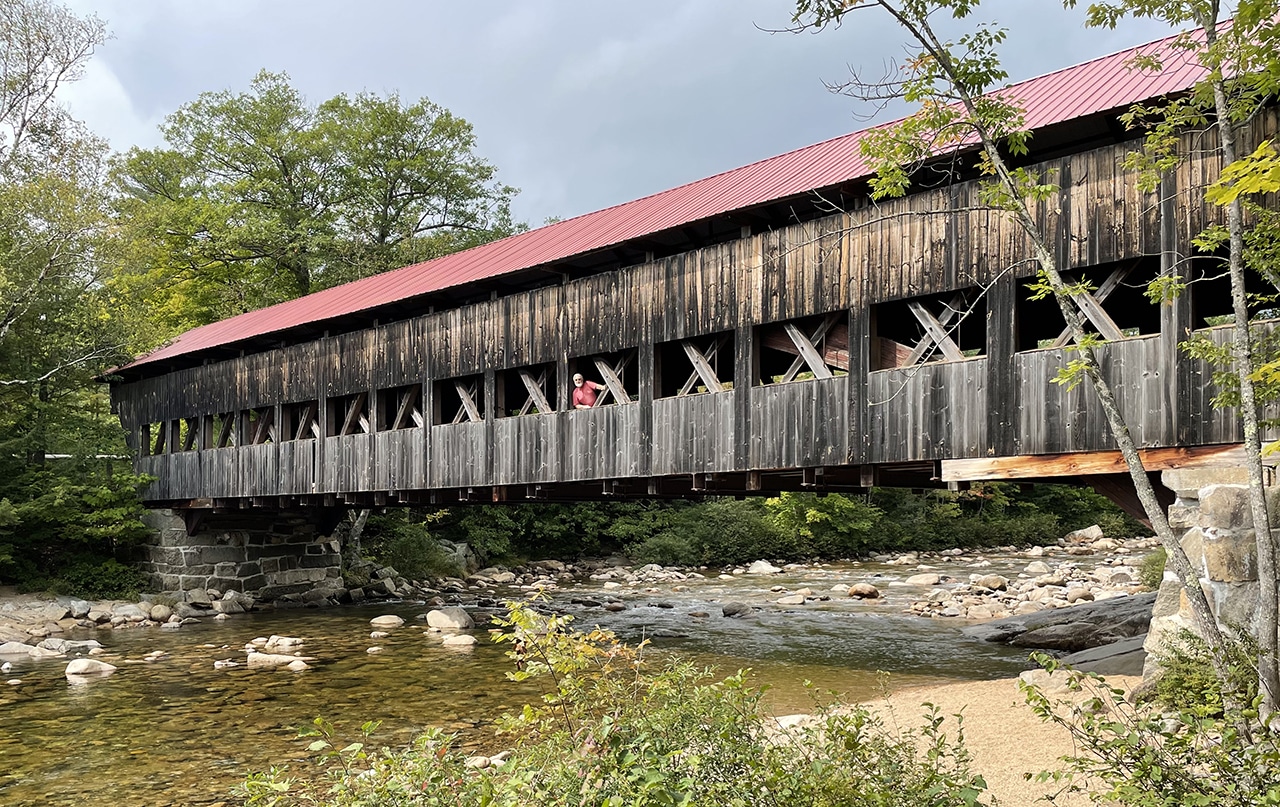 Adding a roof to a wooden bridge offered it protection from the elements, thereby extending its lifespan. Iron bridges became the norm in the mid-1800s making roofs unnecessary – and with height, width and load restrictions also lifted, the eventual phase-out of covered bridges had begun. Currently there are 54 historic wooden covered bridges still standing in the state. We saw ten – so clearly we have more exploration to do in New Hampshire!