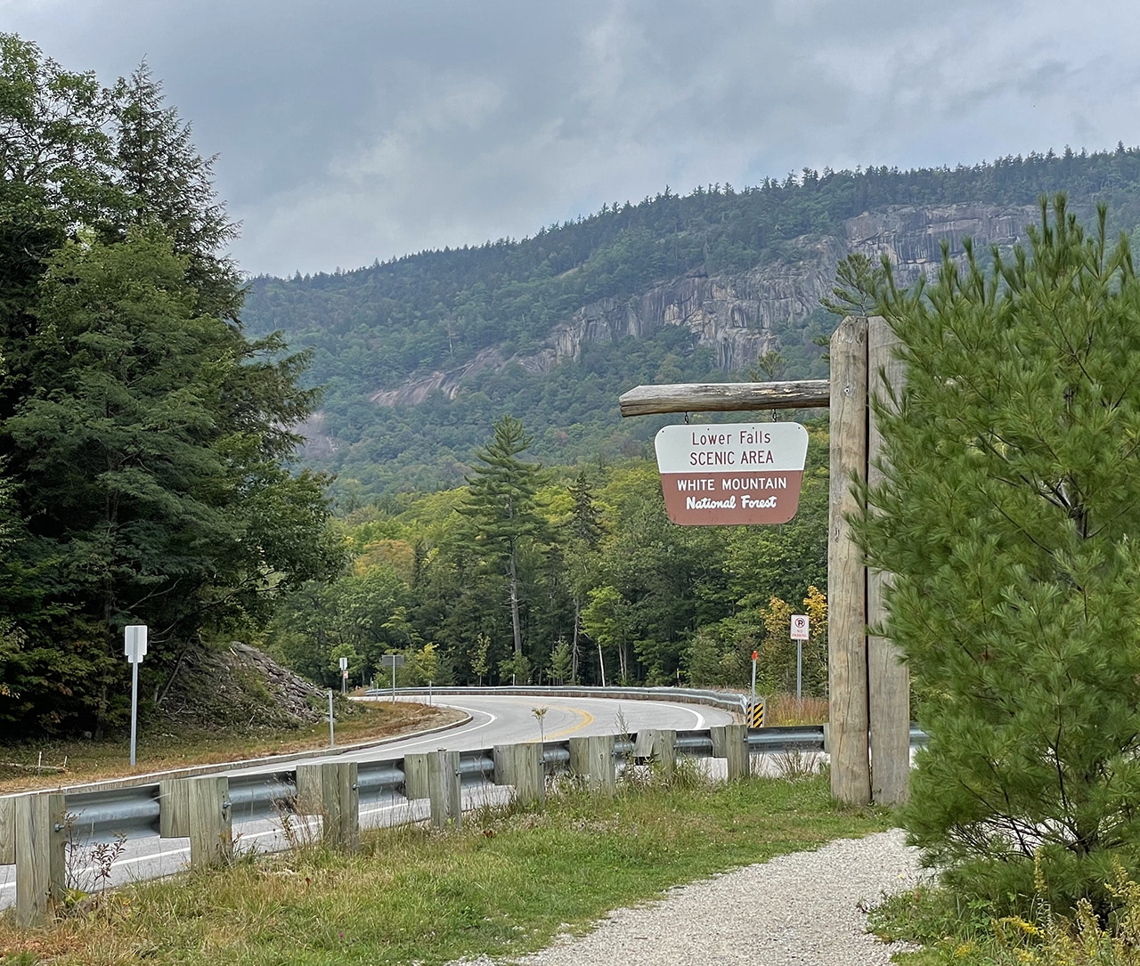 Lower Falls Scenic Area is a very popular destination on this beautiful highway. Although none of the “falls” are large, the Swift River cascades over smooth granite rocks into large pools – like a natural water slide. The pools are plentiful and once the current of the Swift River calms down and the water temperature rises in early summer, this beautiful place can bring large crowds to play in the mountain water.