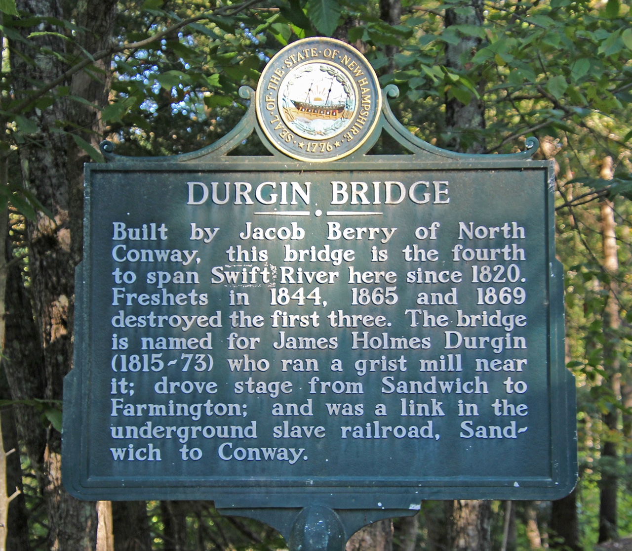The Durgin Bridge was a link in the underground railroad from Sandwich to North Conway and is listed on the National Register of Historic Places.