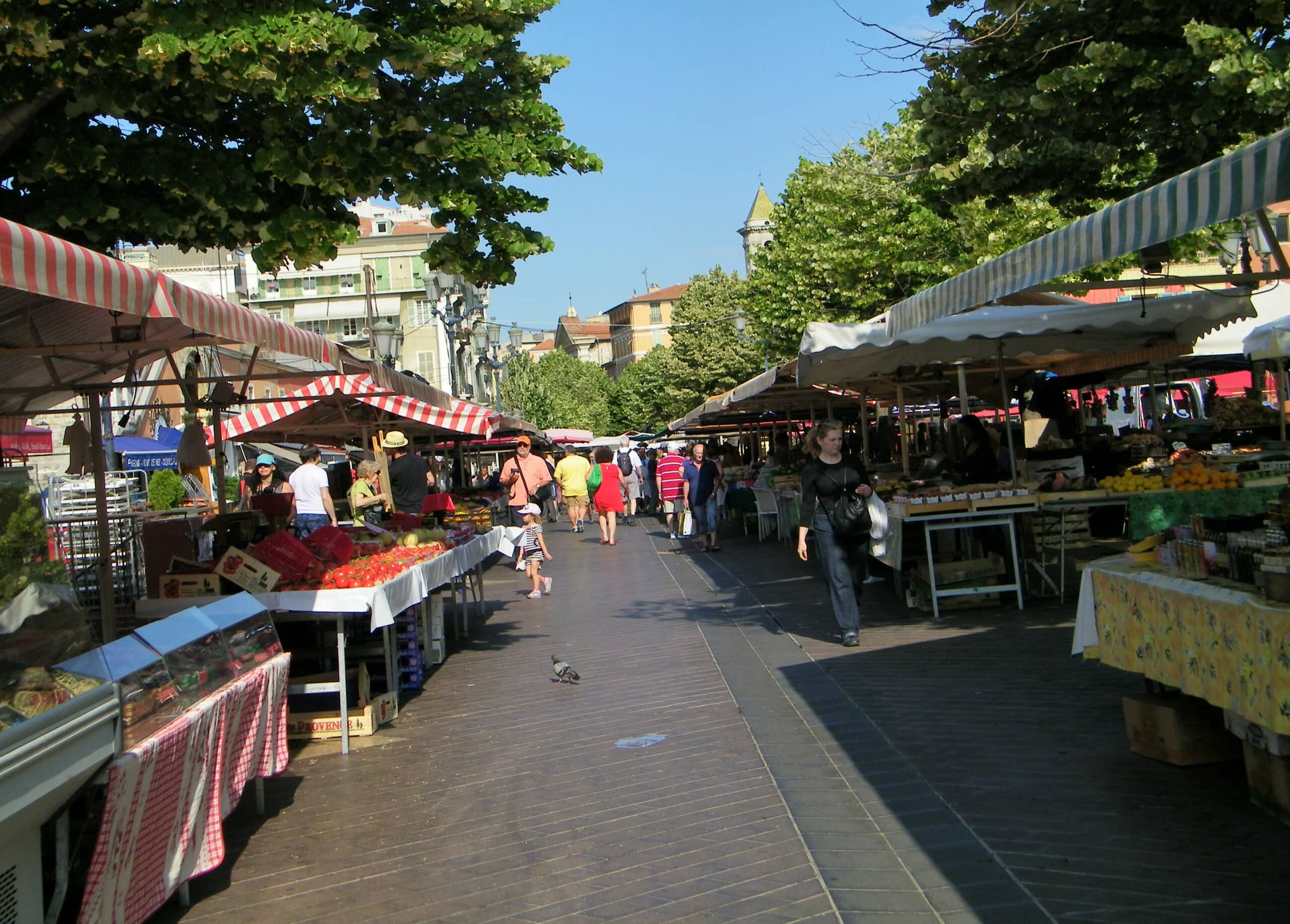 We got off the bus in the Old Town area of Nice and strolled along a charming walkway to the Cours Saleye, an open-air marketplace featuring flowers, food items, produce and live fowl from neighboring farms. Since we couldn’t take any of our purchases onto the ship, it seemed a little silly to have this be a stop, but it was a gorgeous day, and the market was quite lovely, so we didn’t complain – not at all.