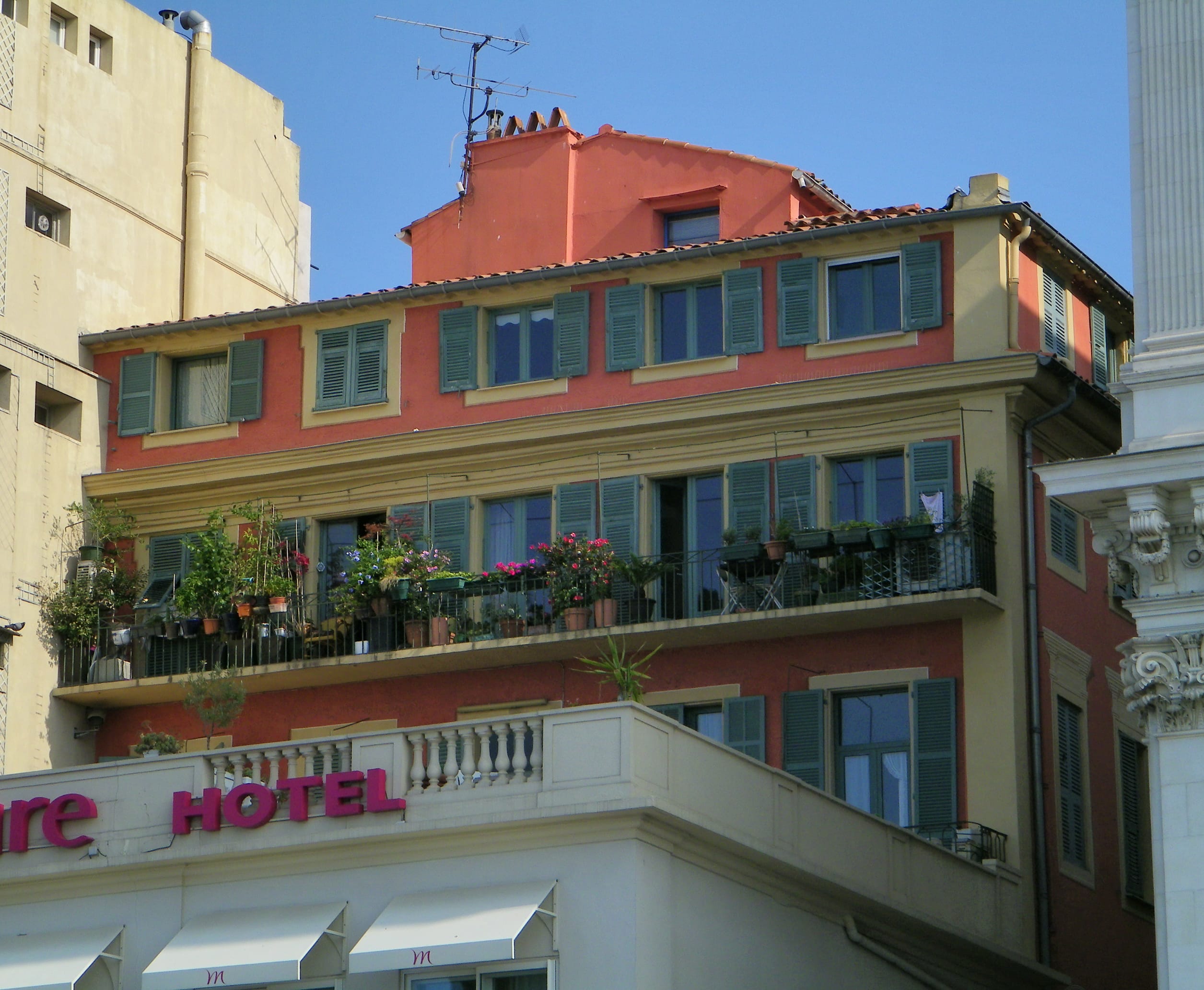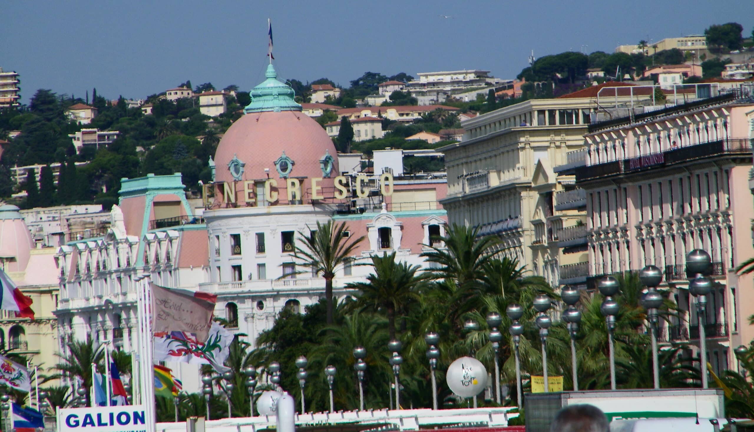 The pink building just above is the The Hotel Negresco. Dating back to 1913, this grand beachfront hotel offers stately, colorful rooms blending contemporary and traditional decor – many with sea views. Suites are also available with more rooms and furnished balconies. It has a very famous restaurant and a carousel-themed bistro with a terrace.