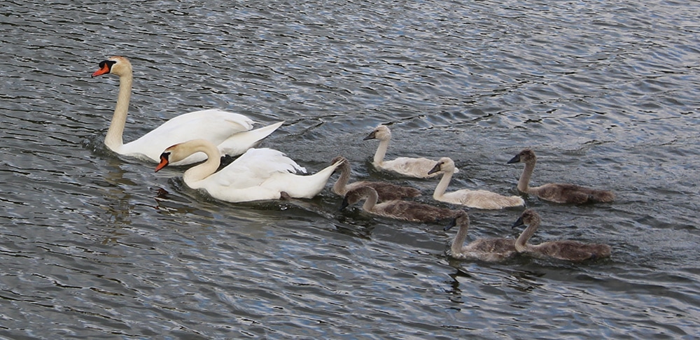 Somewhere between here and there, we passed by an awesome onion-like tower and made friends with two swans (and their cygnets) who were looking for a handout from our shipmates. As soon as they realized there would be no food, they slowly made their way back across the river.