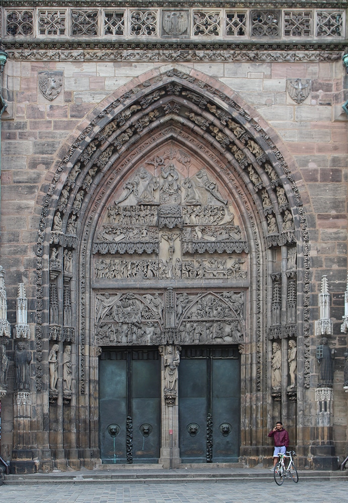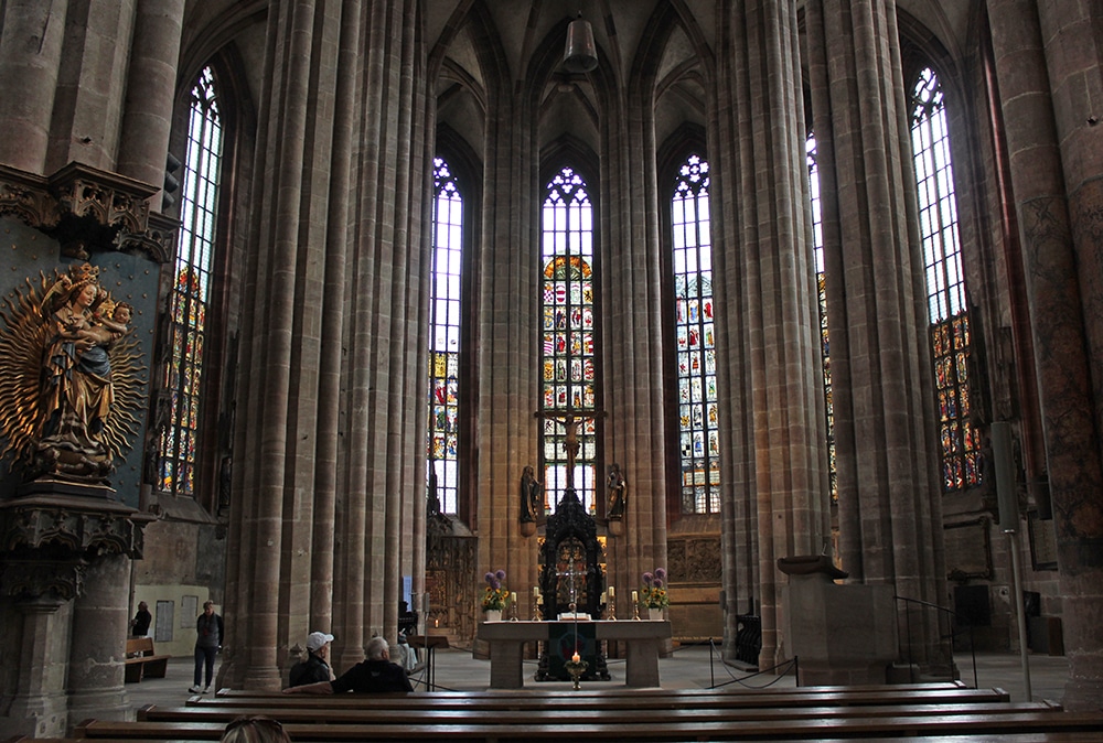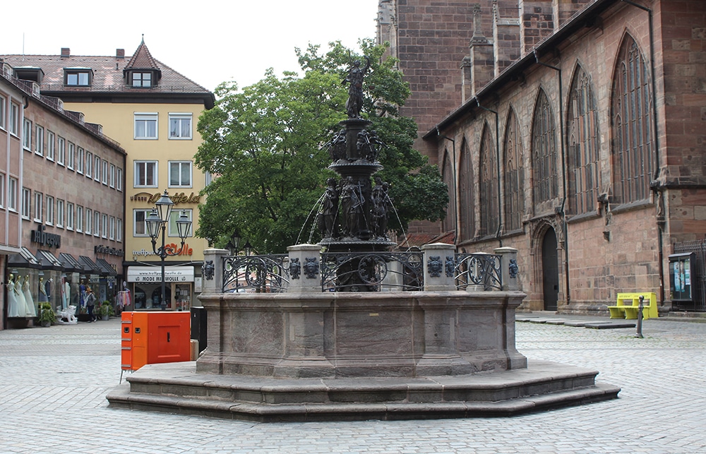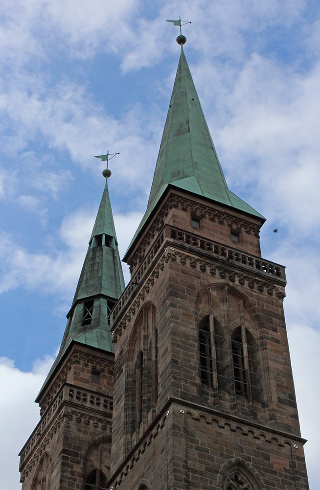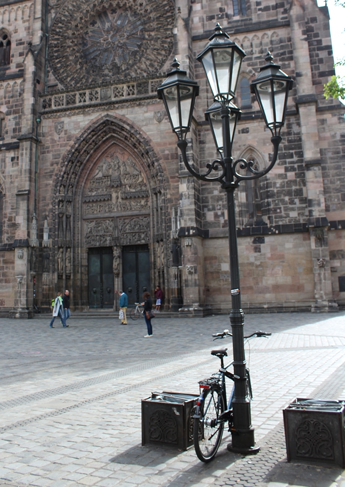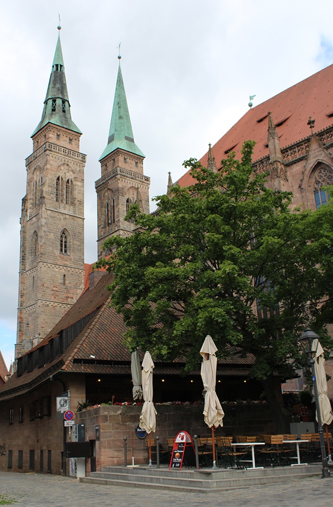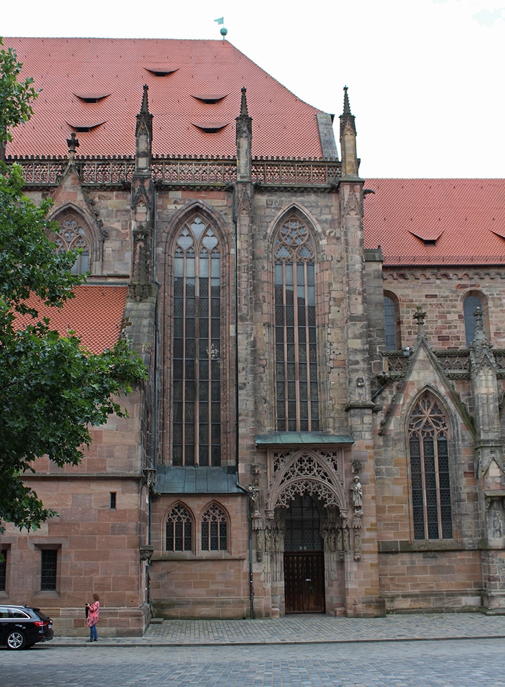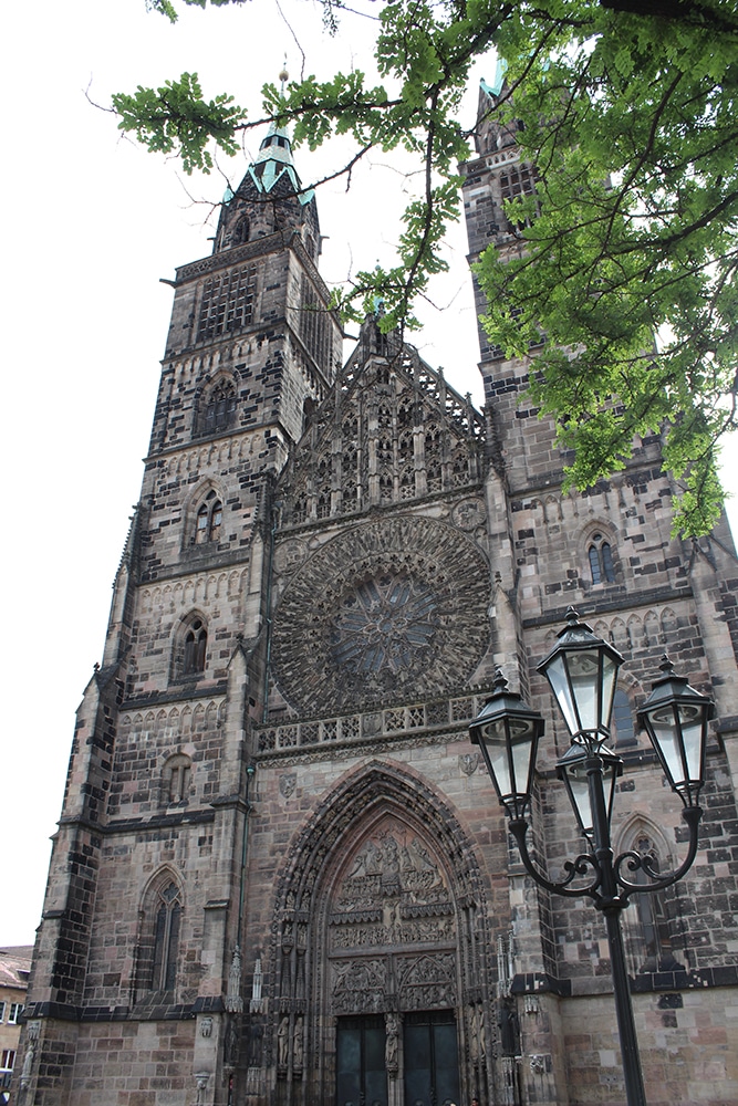It was hard not to notice the beautiful cathedral just beyond the square. We only worshipped this one from afar and weren’t able to go inside. Dedicated to Saint Lawrence, St. Lorenz was badly damaged during WWII and later restored. It is one of the most important Evangelical Lutheran Churches in Bavaria and another work of Gothic art. If you click on the link there are photos of the inside.