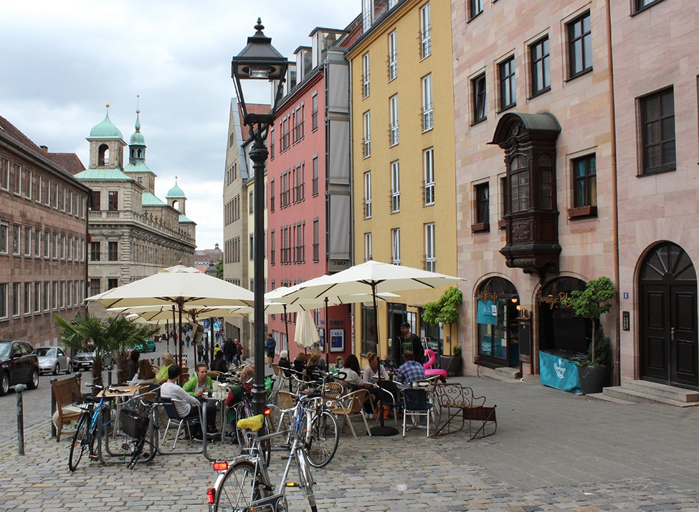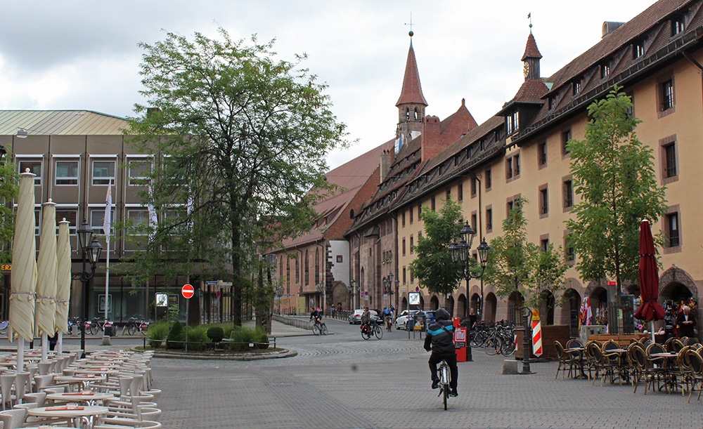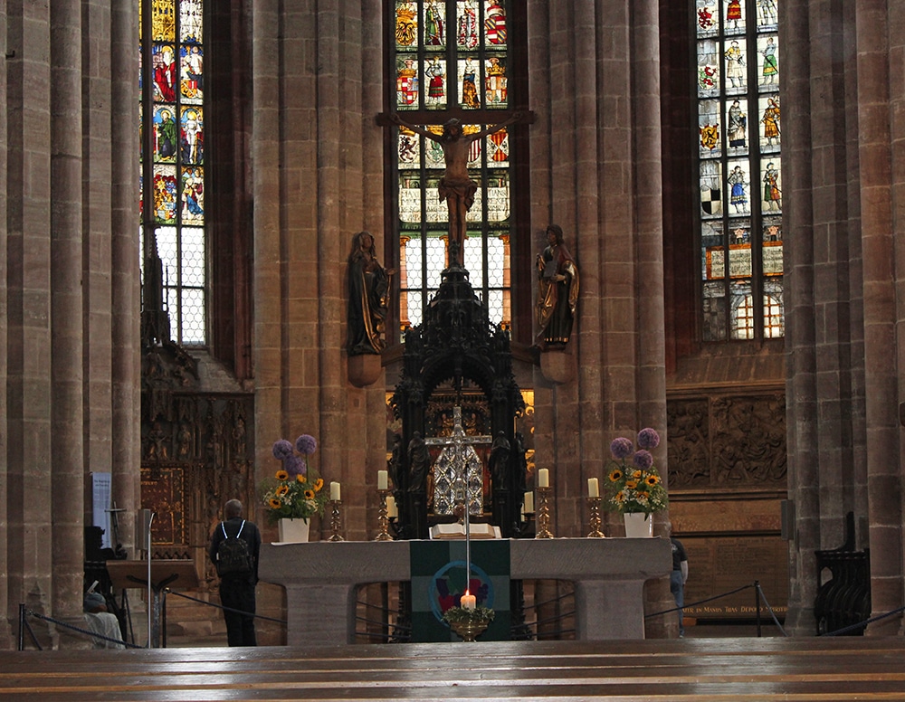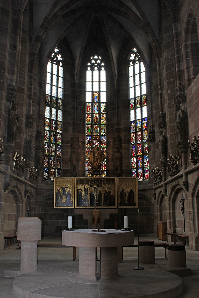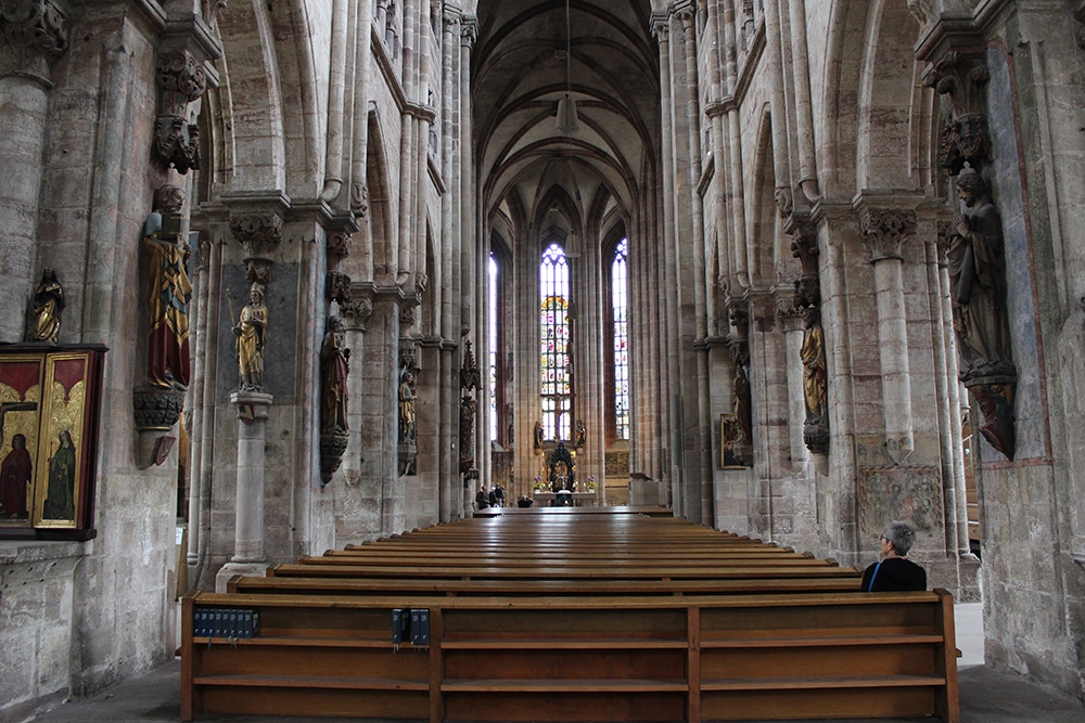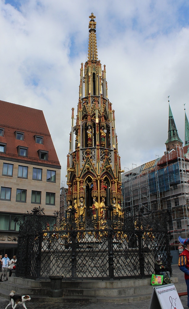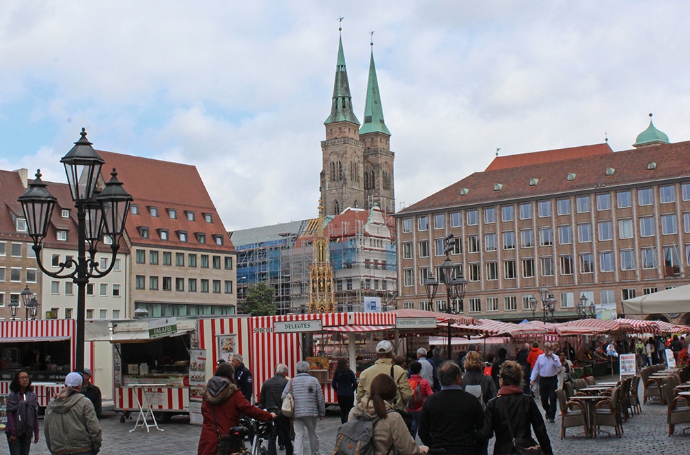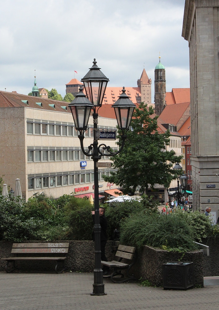 It was hard not to notice the beautiful cathedral just beyond the square. We only worshipped this one from afar and weren’t able to go inside. Dedicated to Saint Lawrence, St. Lorenz was badly damaged during WWII and later restored. It is one of the most important Evangelical Lutheran Churches in Bavaria and another work of Gothic art. If you click on the link there are photos of the inside.