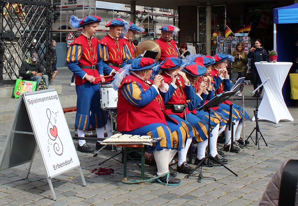 The main market is almost completely pedestrian, with the exception of one one-way street. The Schönen Brunnen (Beautiful Fountain) was built at the end of the 14th century and attracts many people with its ornate and gleaming exterior. Just over 62 feet high, it has the shape of a Gothic spire and a latticed fence, probably installed to protect it from vandalism. The main attraction is a gold shimmering ring, which was intended to fulfill wishes when rubbed. The line was quite long for that experience – but of course I waited. We also enjoyed a lively concert by the local volunteer fire brigade – Spielmannszug Erbendorf.