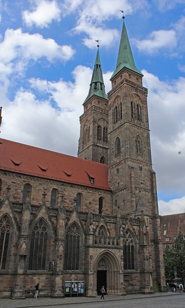 St. Sebaldus Church (below) is yet another medieval church (but fabulous!). With its beautiful red tiled roof and two greenish steeples, it’s easy to spot from quite a distance. It is one of the oldest, most important churches of the city. There are great photos at the link above.