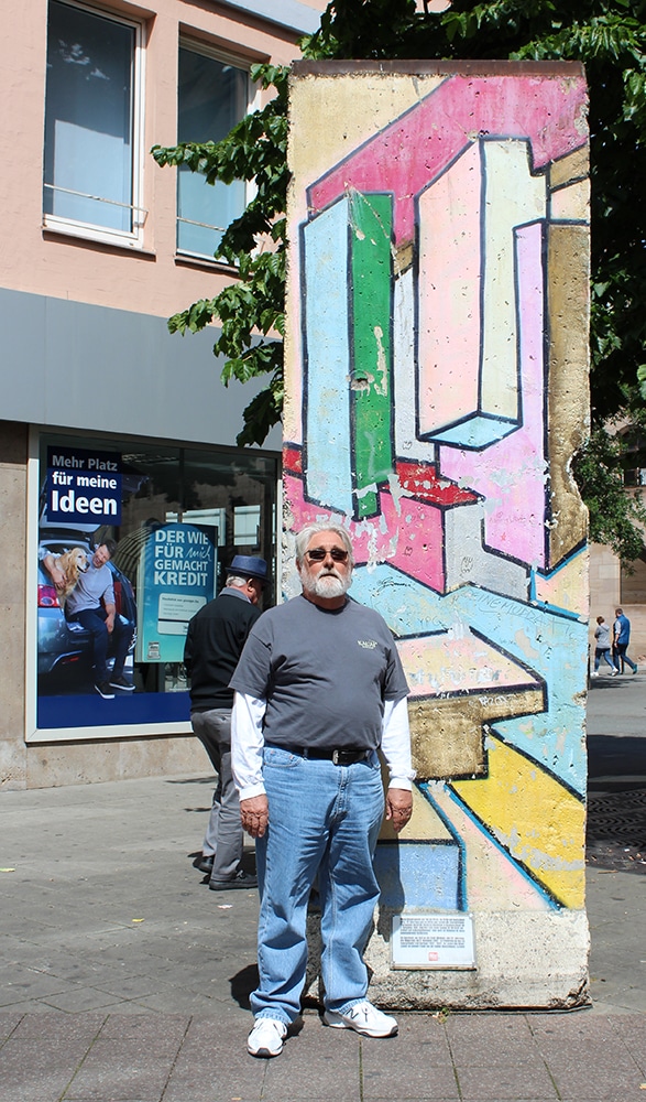 Jim is standing by a section of the Berlin Wall in the photo below.