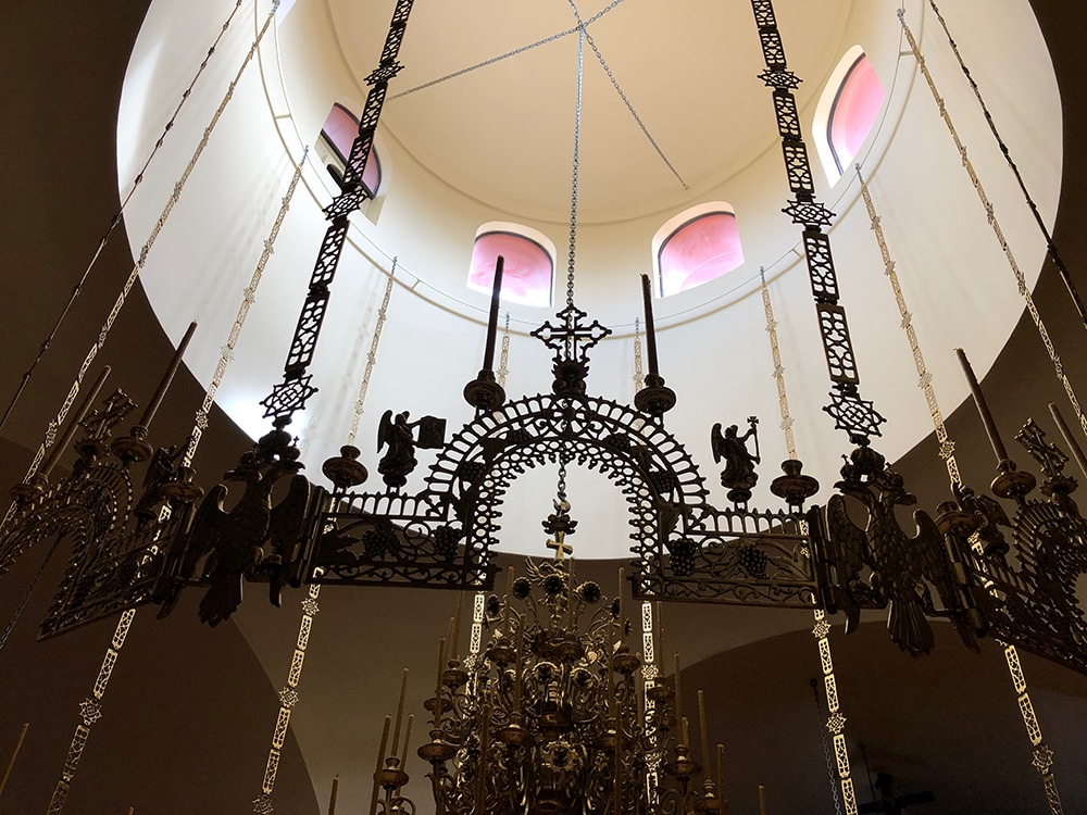 There are at least six other chapels, each dedicated to different Saints. All of their interiors looked similar with gorgeous chandeliers hanging from a center dome and windows that let in outside light. There were stunning “stations” where I observed folks praying and kissing the feet or hands of the holy figures that were painted on each. They did several hand gestures, similar to the stations of the cross on theirs heads and shoulders and some knelt and dipped down several times at each station. Not that I stared, but the dedication that they expressed was very admirable and really quite beautiful. We certainly respected their privacy and I only took photos (without flash) in a discreet manner when no one was around as to not disturb their prayer time.