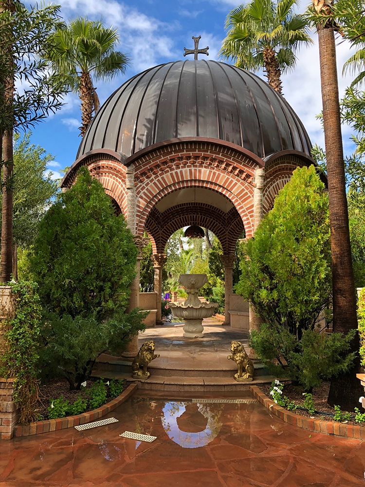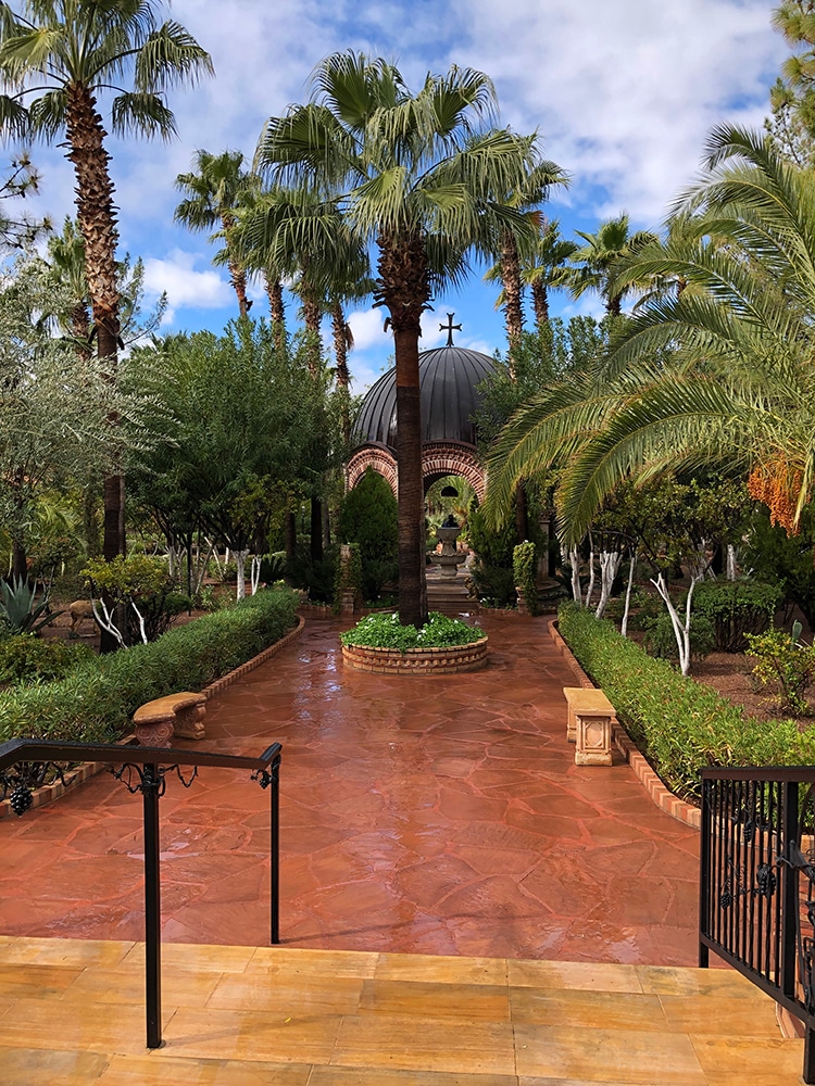 The brickwork, tile, stonework and mosaics are just gorgeous with each chapel having a slightly different look. The palm trees stood tall and the desert landscaping was there to remind us that even though this is a gorgeous and lush place, we are still in the desert. I was fascinated at the beauty around every turn.