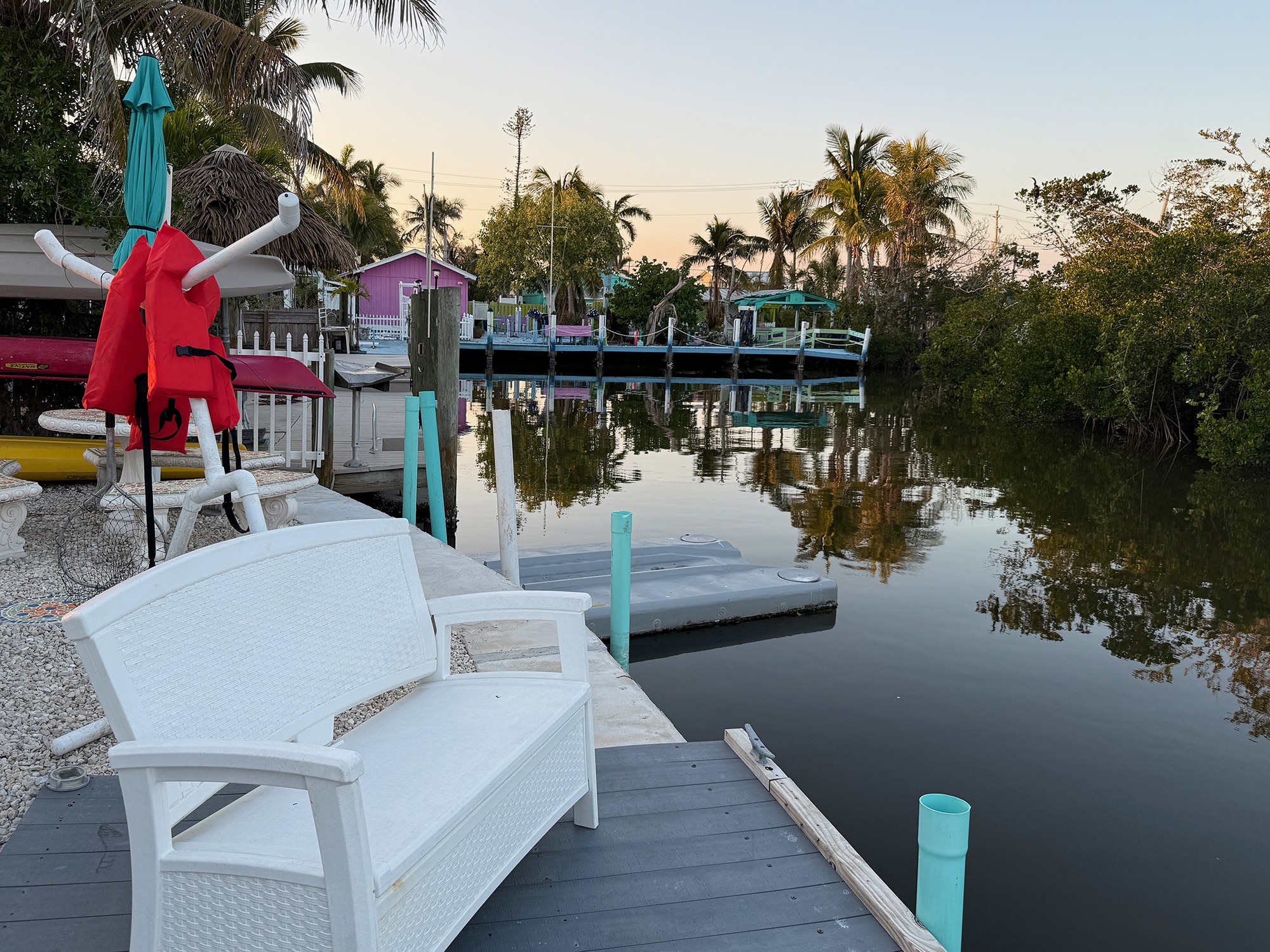 We coulda borrowed bikes or a kayak to explore the island or the waters of Matlacha Pass. We woulda really appreciated the warmth of the fire pit had it been chilly while we were there. Instead we enjoyed our morning coffee with the birds and took a few drives and walks out to explore – making this the perfect stay.
