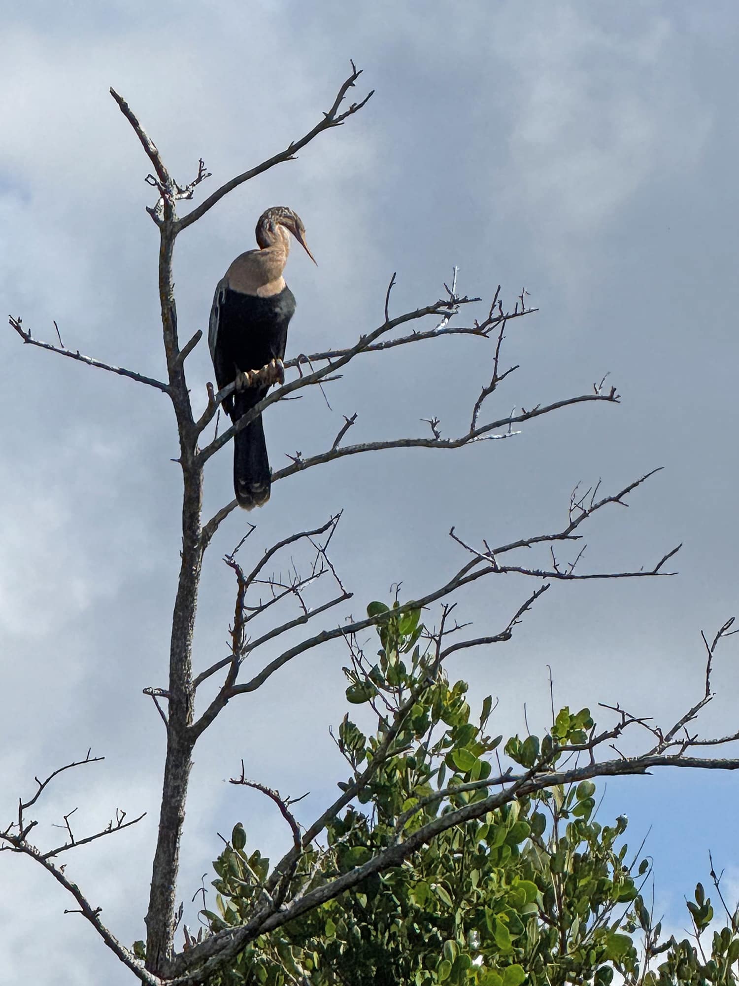 The last photo below is a female Anhinga. “Females/immatures have a pale head, neck, and breast and a dark belly. Note its long S-shaped neck and dagger-like bill.” This is the only time I saw an Anhinga here, but I have seen them on other trips to Florida. If you follow this blog, you’ve probably seen more than one of my photos.
