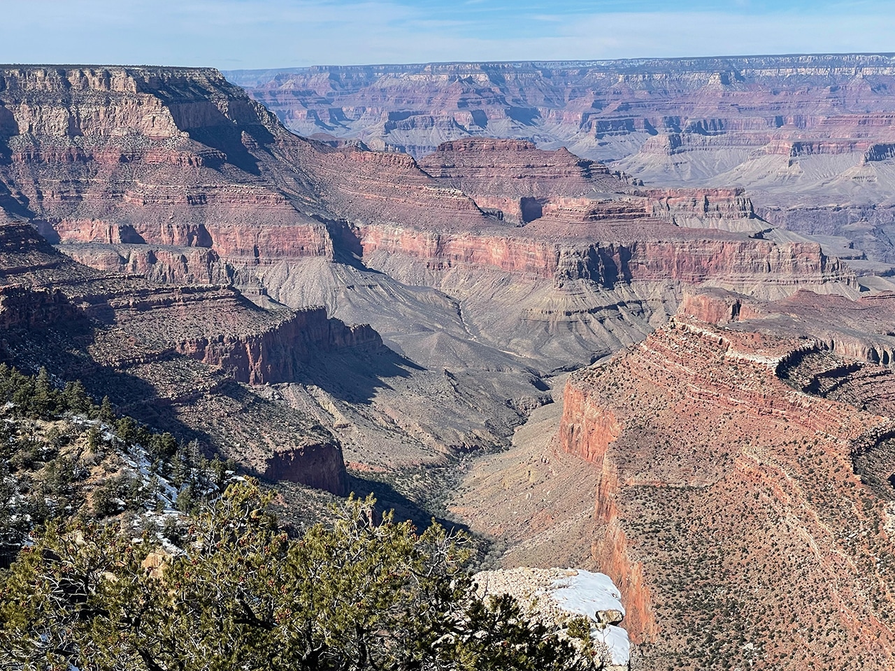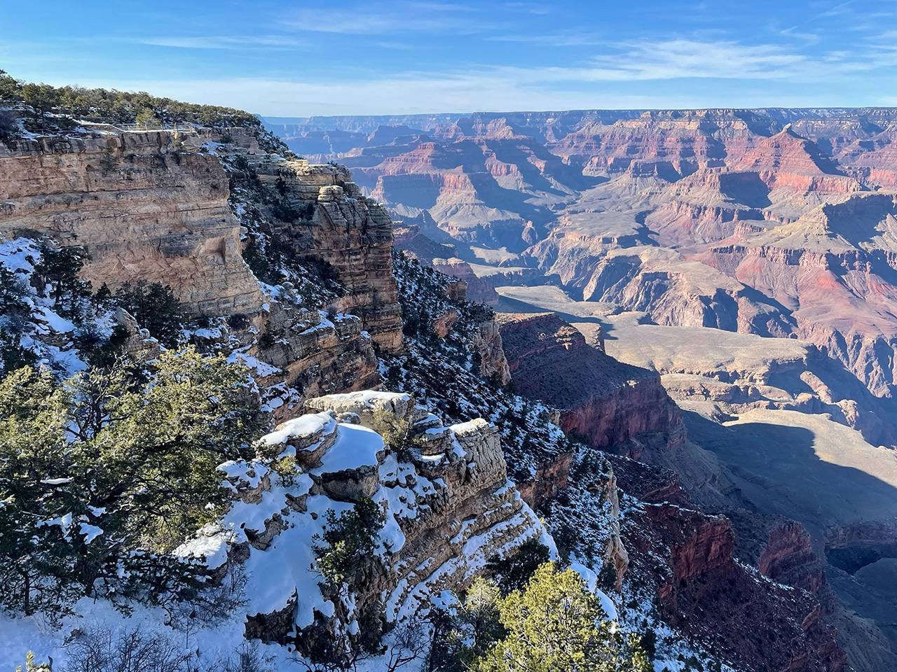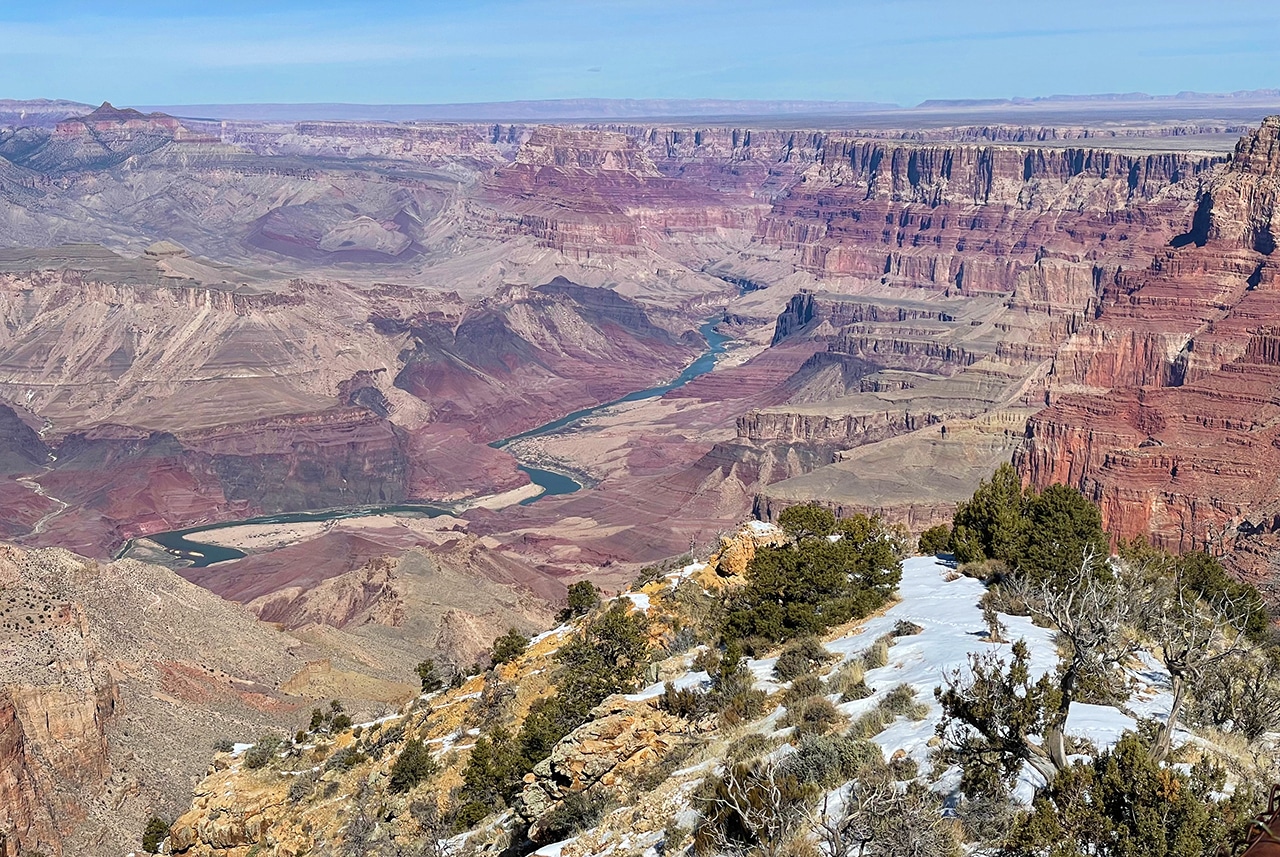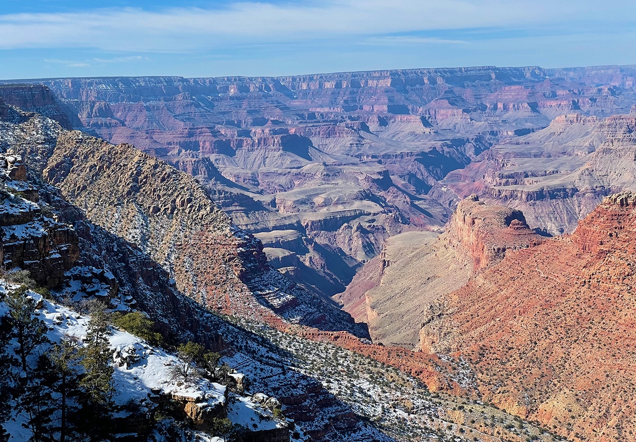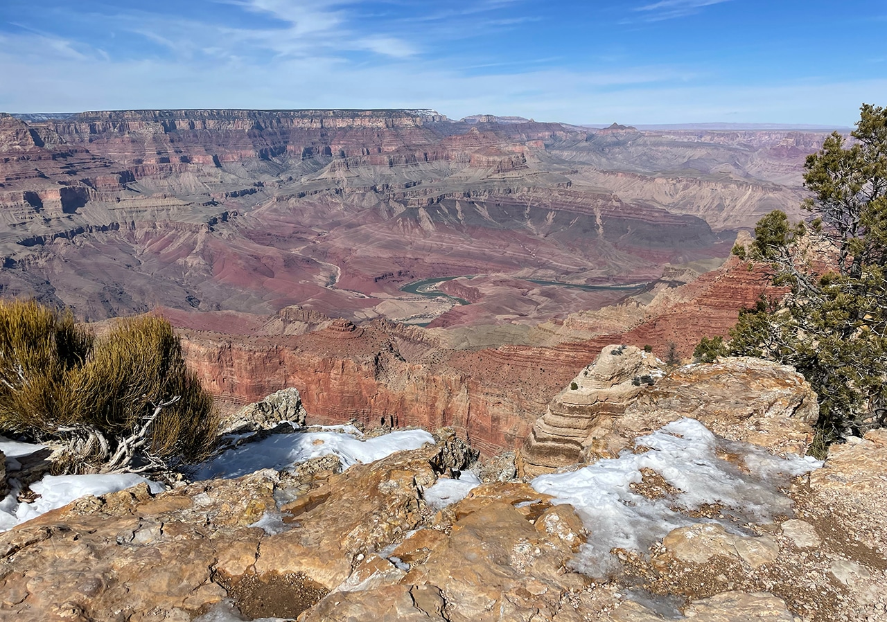 Gazing out into the Grand Canyon with mid-February’s brisk winds was not ideal, but the sun shined brightly and traces of snow were beautiful on the red rock. Since we were only two hours from the Canyon in Sedona, a day trip worked well, especially when we found out that several of the viewpoints were closed.
