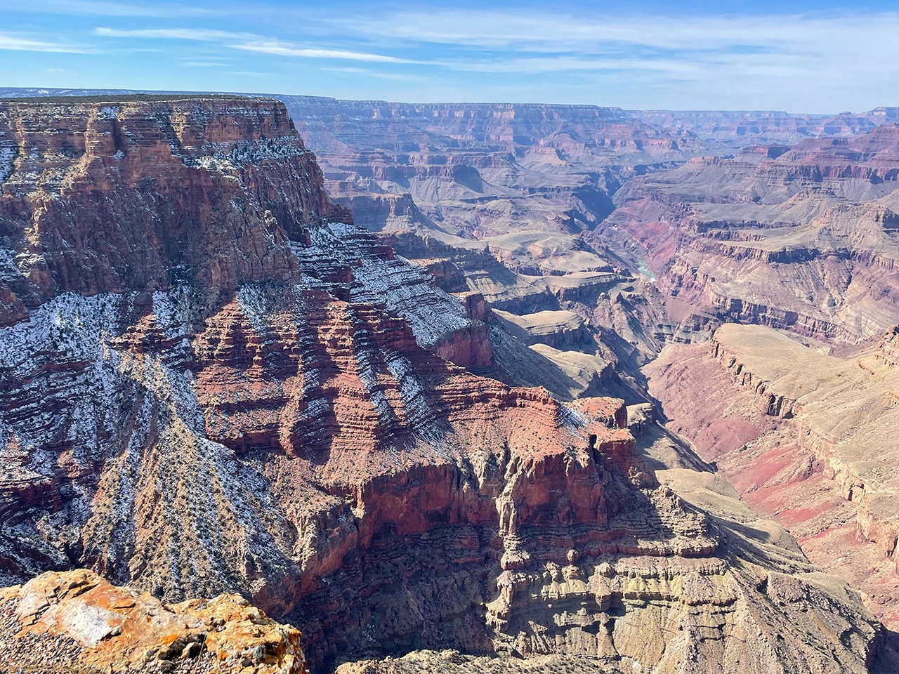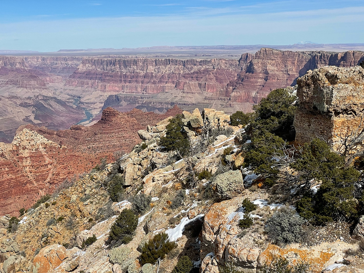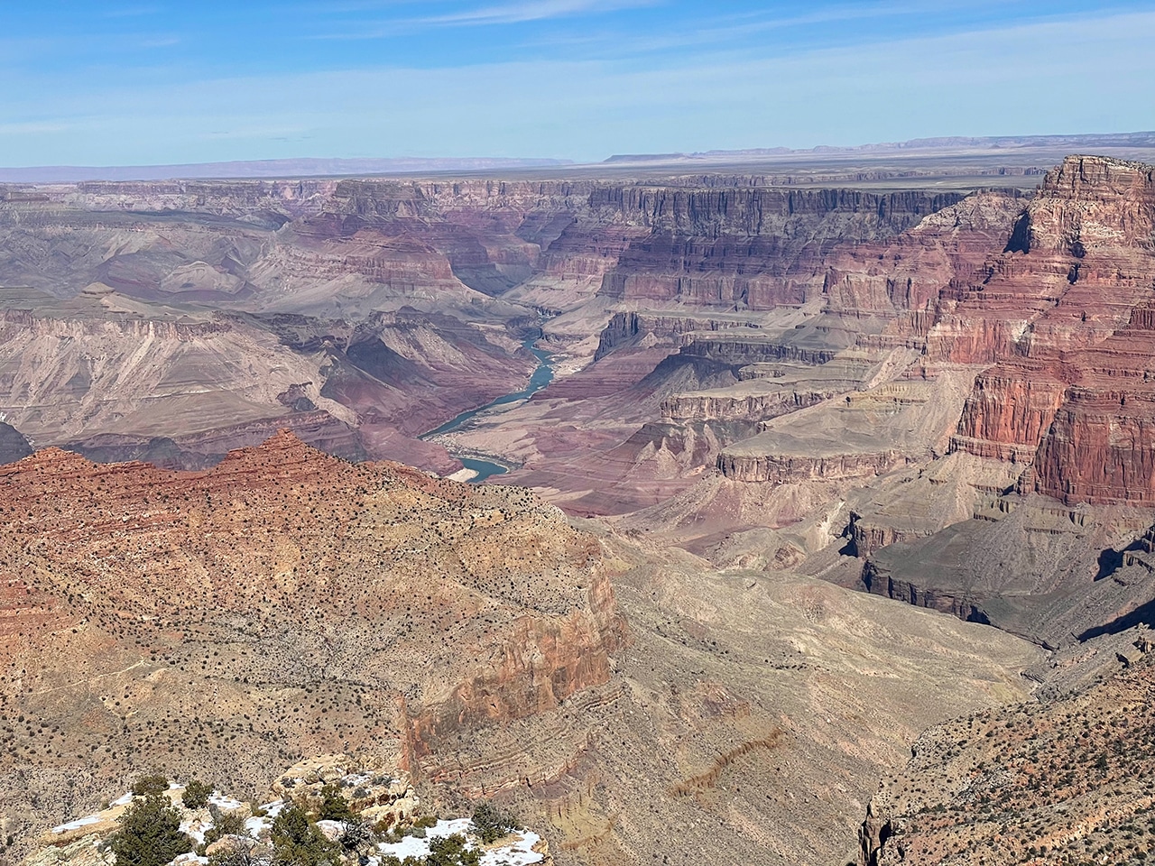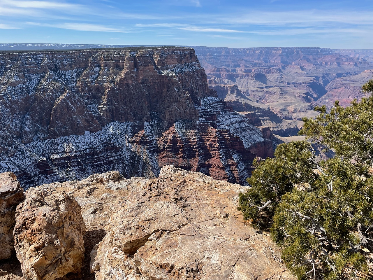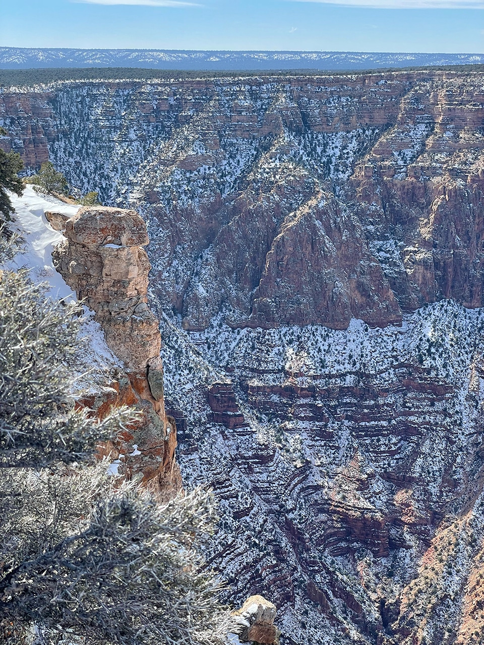 Gazing out into the Grand Canyon with mid-February’s brisk winds was not ideal, but the sun shined brightly and traces of snow were beautiful on the red rock. Since we were only two hours from the Canyon in Sedona, a day trip worked well, especially when we found out that several of the viewpoints were closed.