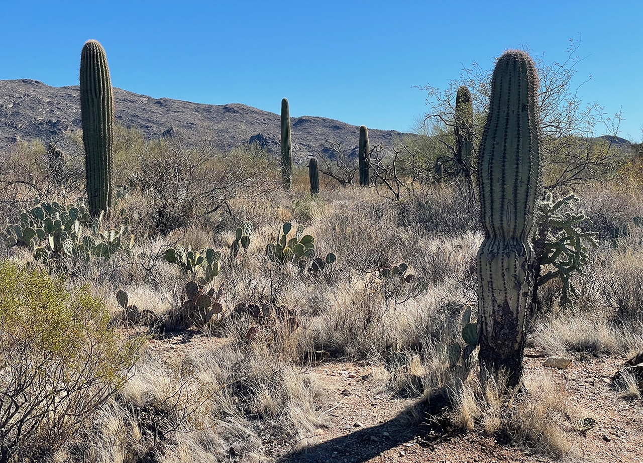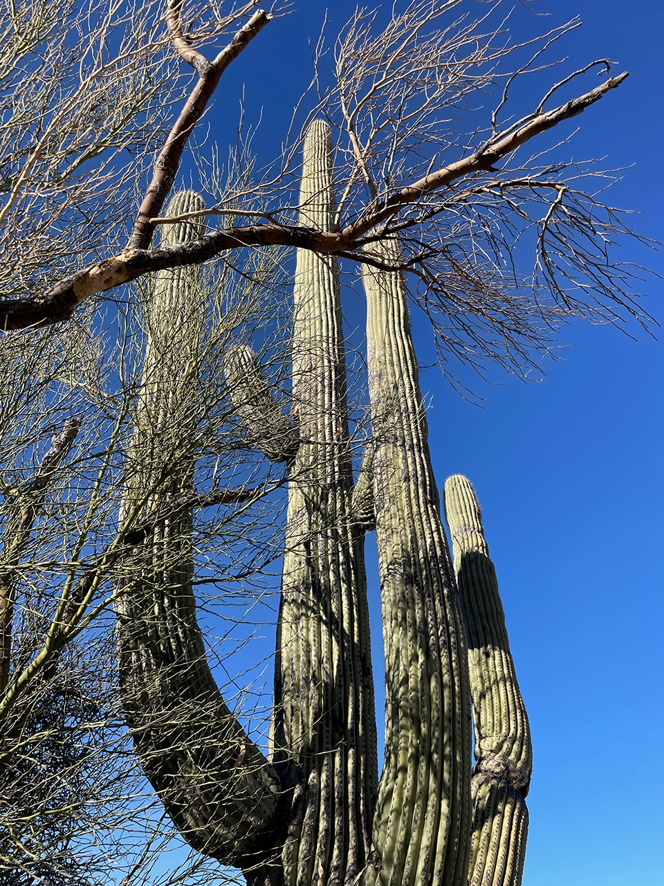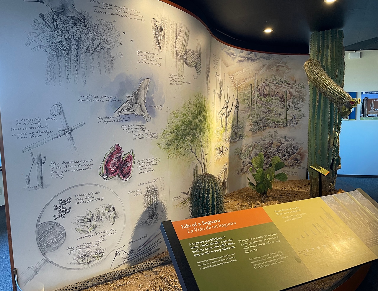 Today we revisited the Rincon Mountain District (the eastern side), since the entrance was only six minutes from home. Although the scenic loop is only eight miles long, it takes a while at 25-mph with lots of stops for views and a trail or two. We walked the Desert Ecology Trail and thoroughly enjoyed the Visitor Center which we didn’t see last time. We learned more about the cacti and the critters that inhabit this prickly place.