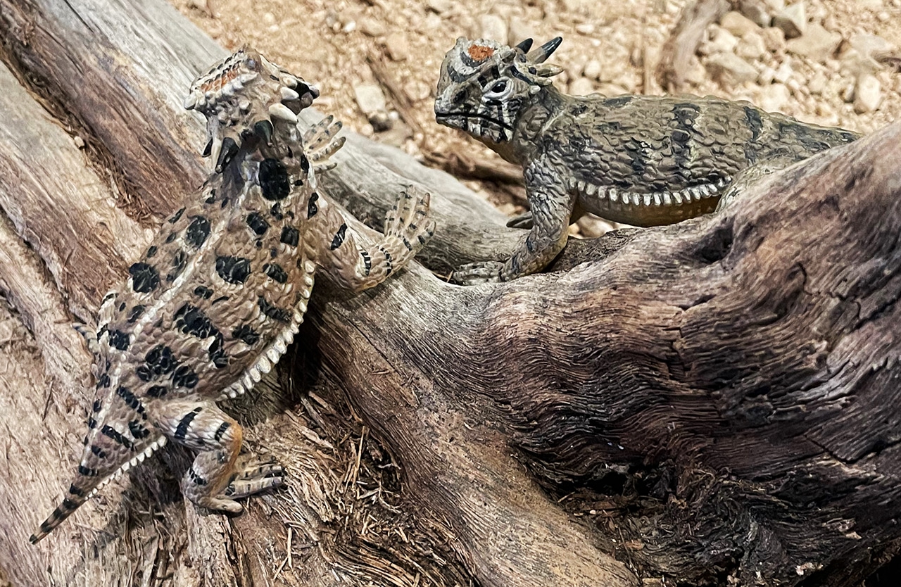 An exhibit about the Regal Horned Lizard was quite fascinating. The fourth photo below shows two of the handsome crowned creatures created for this exhibit. Click on the link for a great video that shows two defense mechanisms utilized when the lizard (or its eggs) are in danger. A third line of defense is shown in this video. Yes, it squirts blood from its eyes into the mouth of its predator! The nasty taste will usually scare it off. Ewww is right!