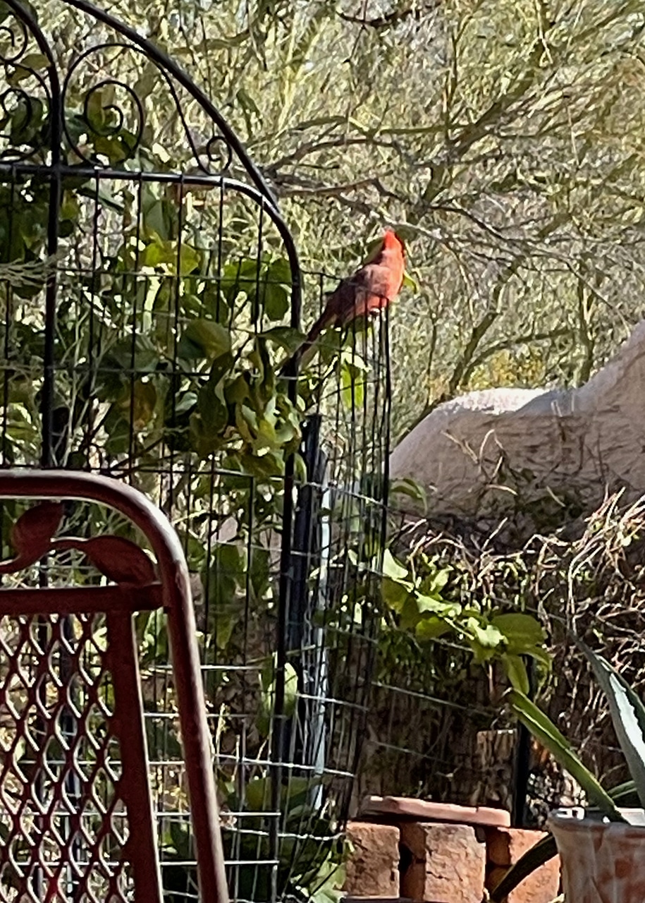 Every morning started with a trip to the patio. The mornings were cool, but we could move our chairs into the sun to solve that problem. Winter was upon our family back home, so I was just happy to be chilly in my robe and slippers in the sunshine. Not much variety in the birds this morning, but the cardinals were beautiful. There were two hummingbird feeders on the overhangs, so occasionally I’d experience a fly-by that was pretty close. They didn’t stick around long even though I stayed as still as possible.