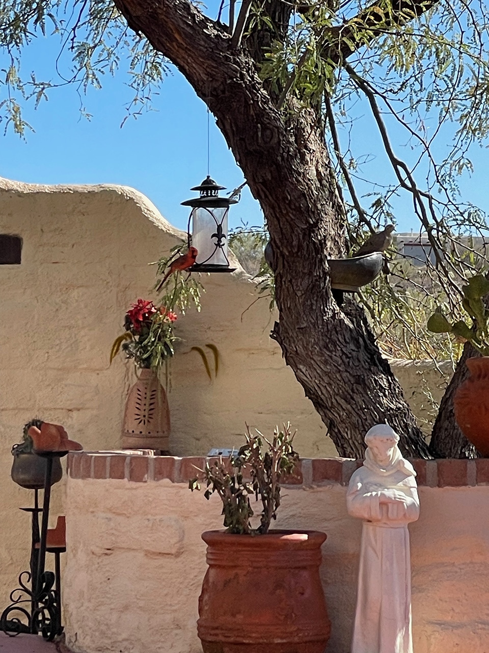 When we arrived, our fridge was stocked with a few beverages and snacks, and there was plenty of coffee for our stay, Our very friendly and helpful hosts offered suggestions for nearby restaurants, and we learned how they ended up in Tucson from their hometown in upstate New York. They even replaced our dirty dishes while we were out and about, but our favorite aspect of this place was its beautiful patio, with an endless supply of birds. Yes, we are just that old!
