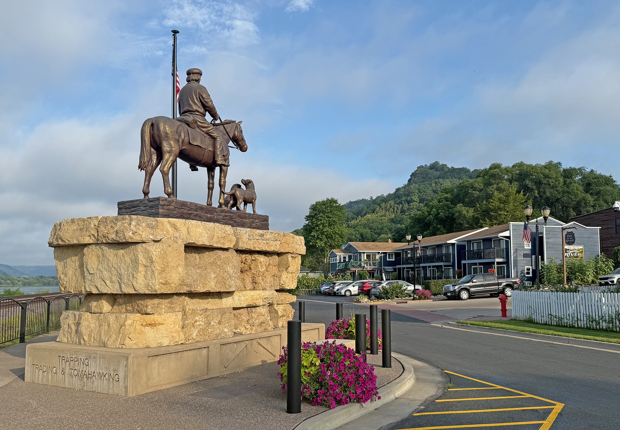 After three pretty full days in La Crosse, it was time to move on – and slow down! And Trempealeau was the perfect place to do just that. Not that we just sat in our room, because you know that would never happen! But we did sit on our small deck several times with a beverage to watch the trains, bikes, boats, and barges go by. All of our outings were close and we were blessed with perfect weather on our one day here on the Mississippi.
