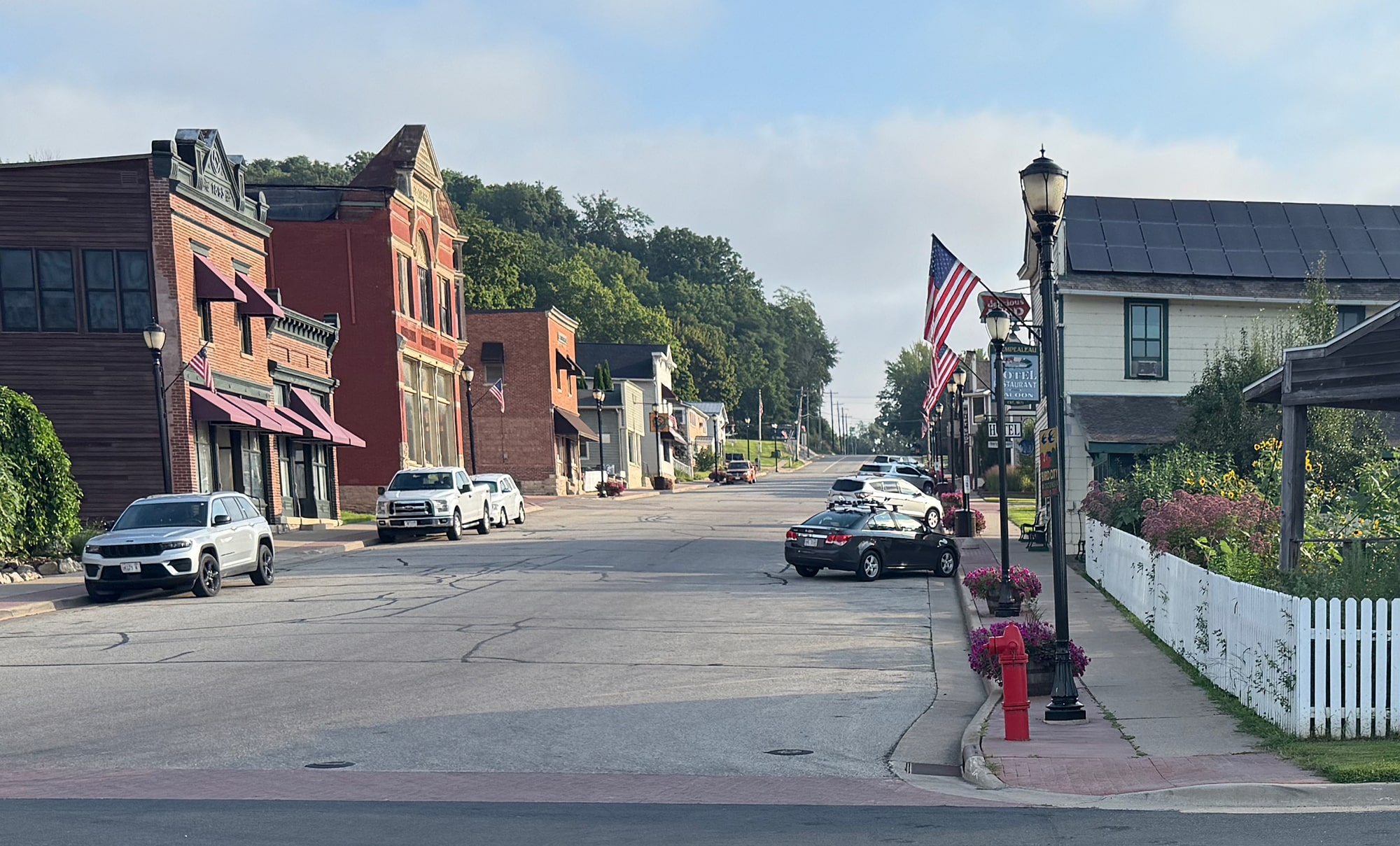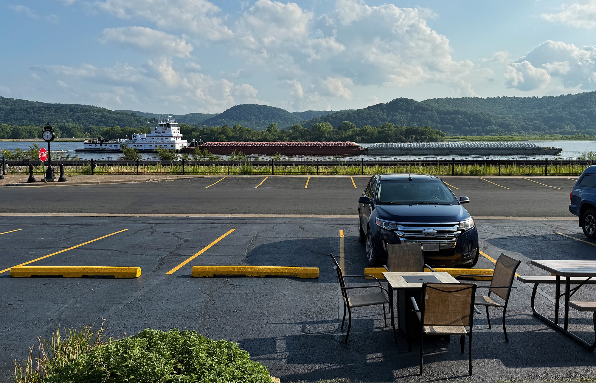 When we arrived in town after our wine tasting at El Maro Vineyard, Cat Daddy’s Bar & Grill was right on the river and called our names for a highly-recommended breaded tenderloin. Since too many folks had the same idea, smash burgers became a great alternative. After a great meal, this was the perfect time to check out our deck and cheers to Trempealeau.