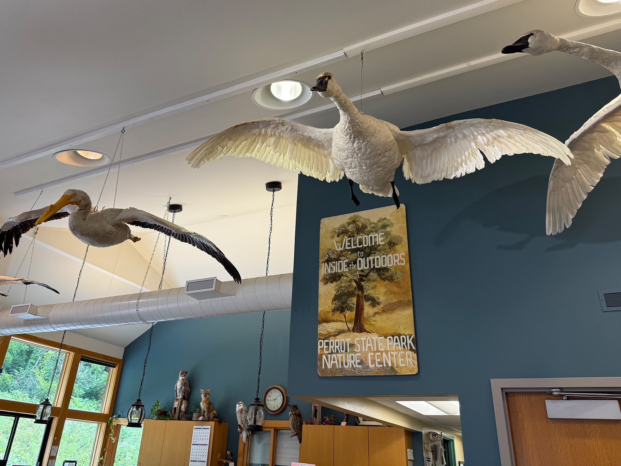 I regret not spending more time at Perrot State Park. It is “nestled among 500-foot bluffs where the Trempealeau and Mississippi rivers meet”, and had I realized that the two rivers meet right by Horseshoe Falls in Brady’s Bluff Prairie, that may have warranted some more time here. We did enjoy the Visitor Center and both bought t-shirts to remember our short visit.