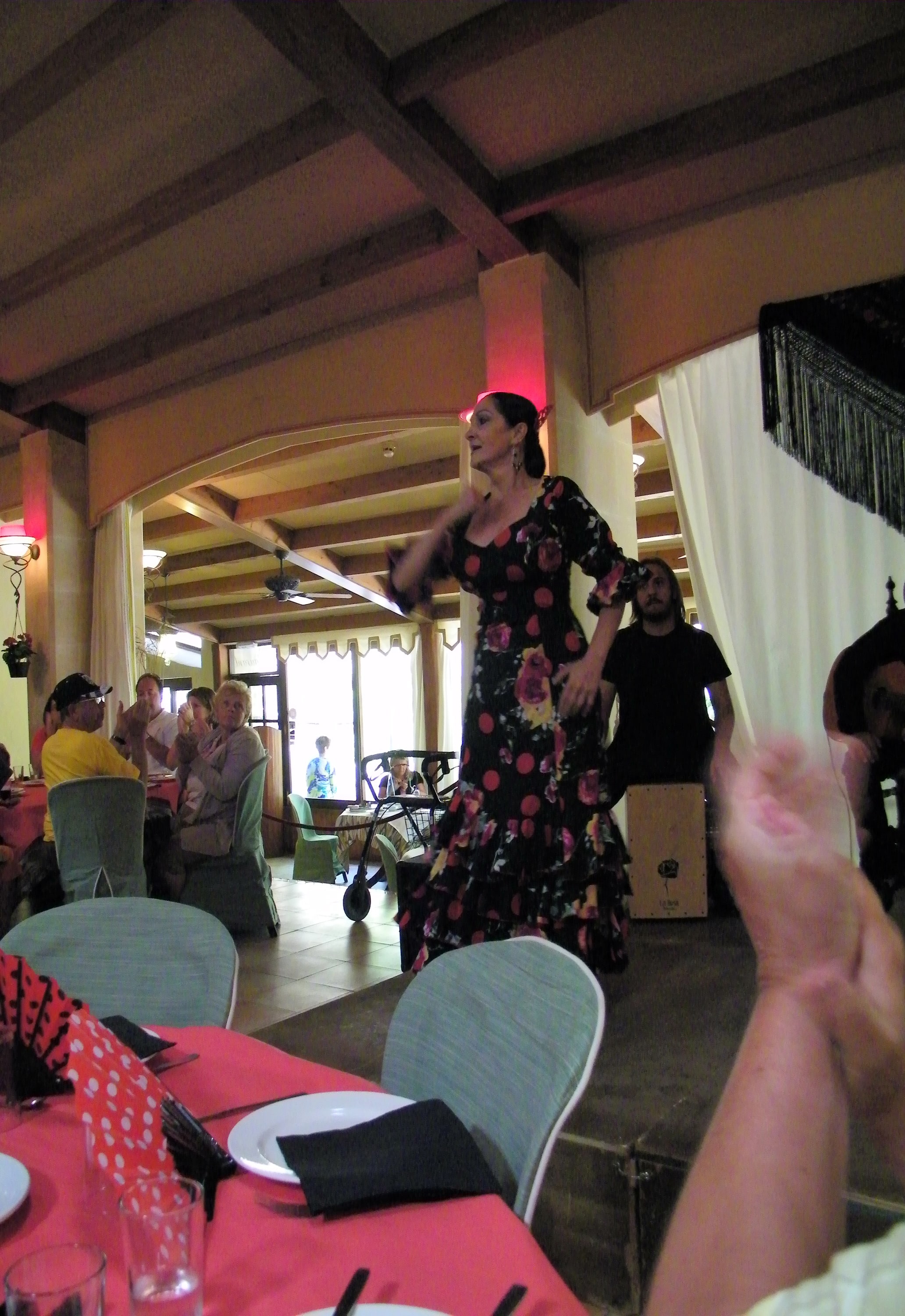 Luckily they took a break and sat for a while and we listened to the wonderful Spanish music while we enjoyed some more wine. It was a spectacular show and we thoroughly enjoyed chatting with the others at the table and we were very happy that no babies were born on stage today!