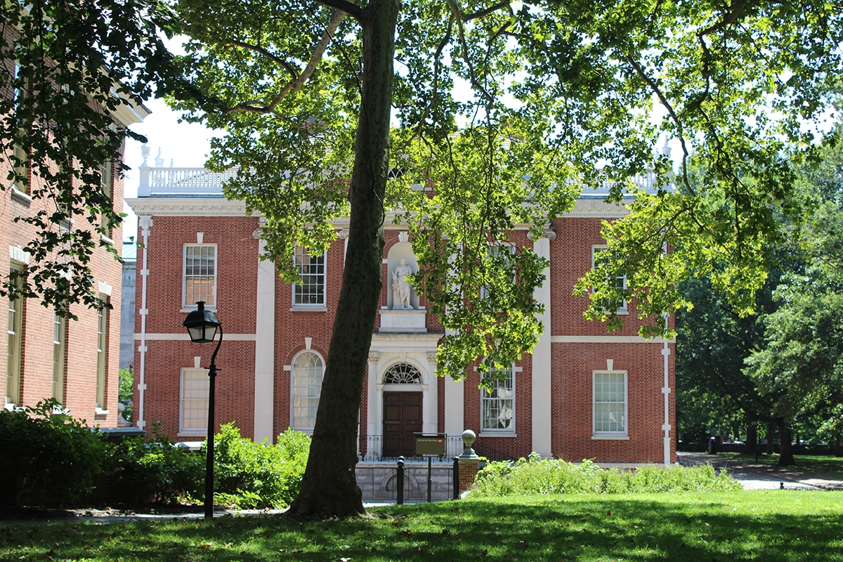 - In the courtyard behind Independence Hall stands the American Philosophical Society’s Library Hall.