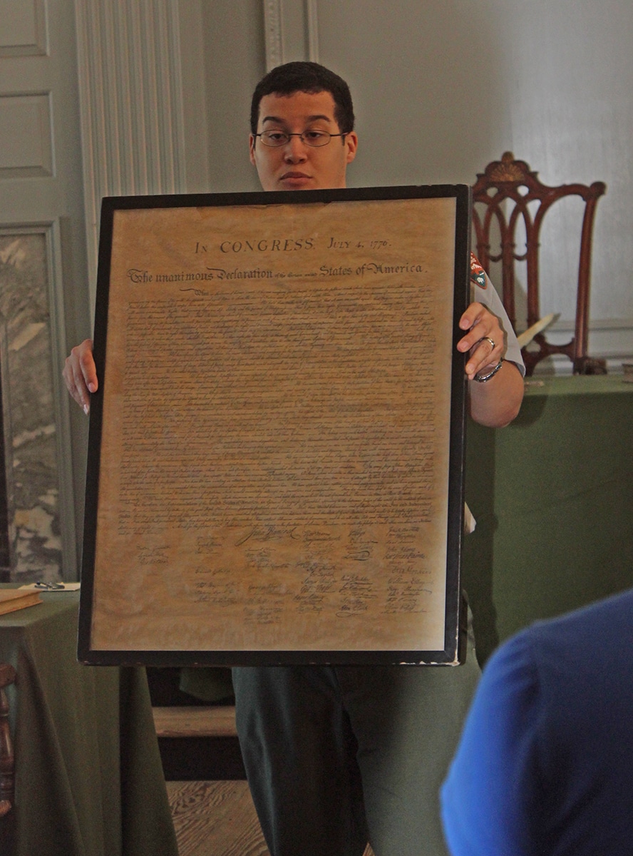 - A replica of the Declaration of Indepence, signed in this room July 4, 1776