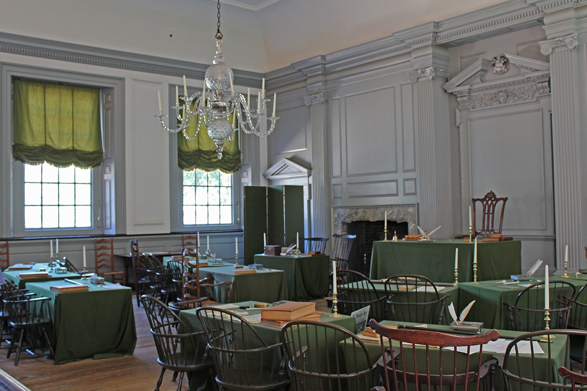 - The Assembly Room with the actual chair that George Washington sat in while presiding over the Constitutional Convention in 1787.