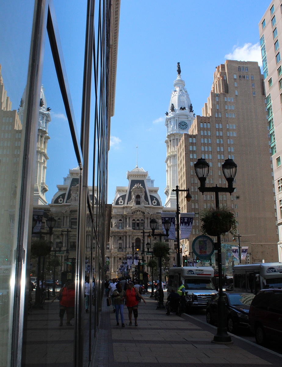 - Philadelphia City Hall amidst the big city that surrounds it.