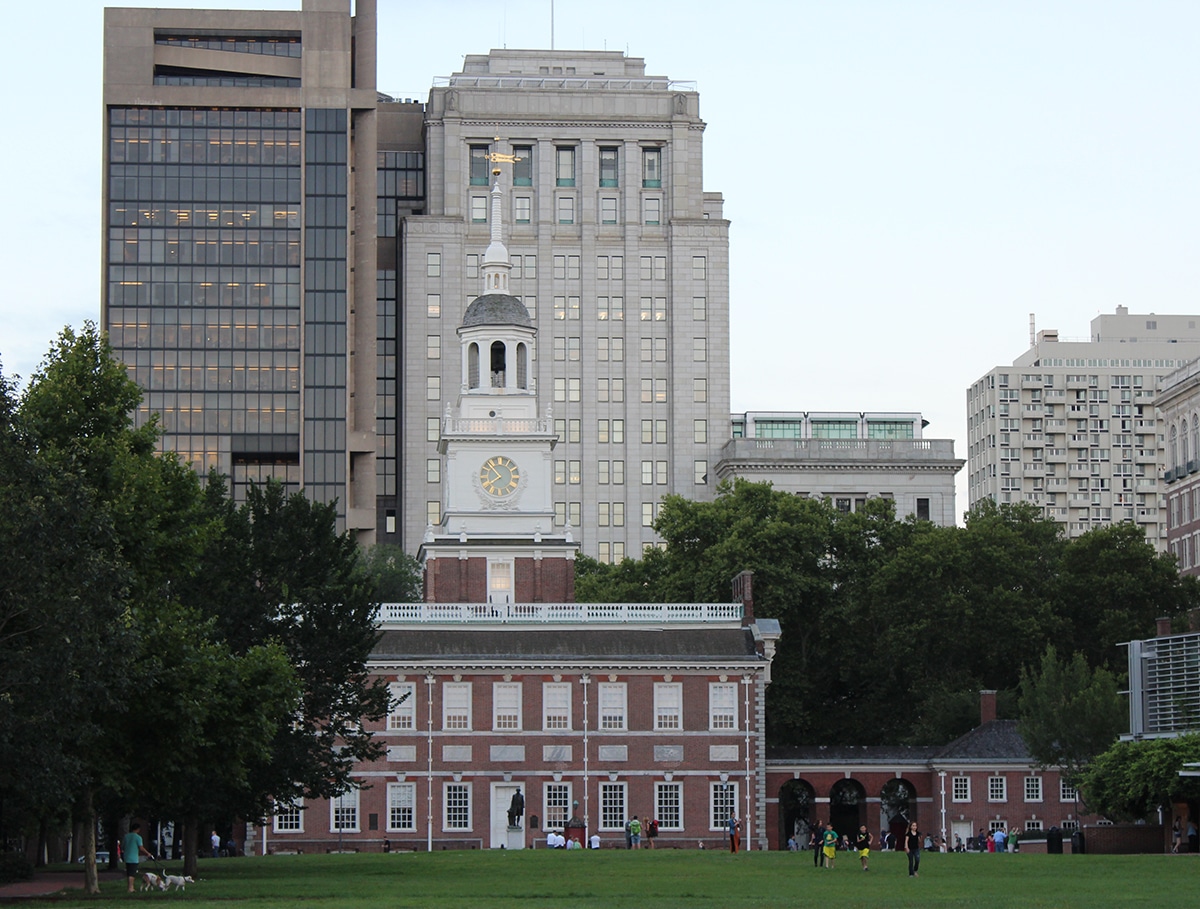 - The big city is the backdrop for Independence Hall