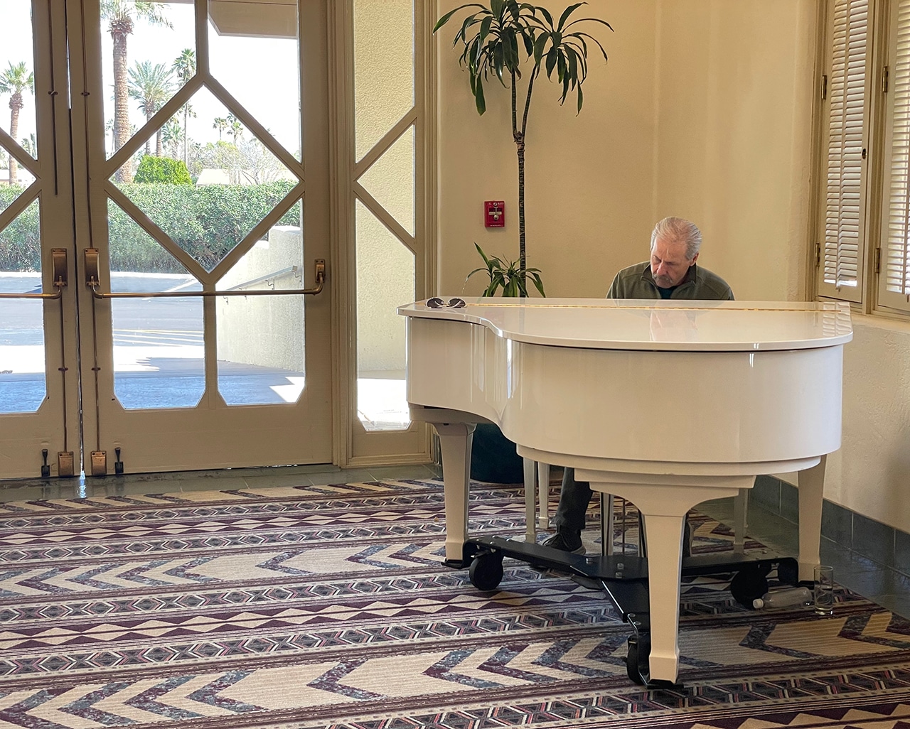 We wandered around like we owned the place. We peaked into conference rooms, checked out a few of the well-appointed sitting rooms, and Greg even played the beautiful white baby-grand. Pictures lined the walls from its 90-year history.