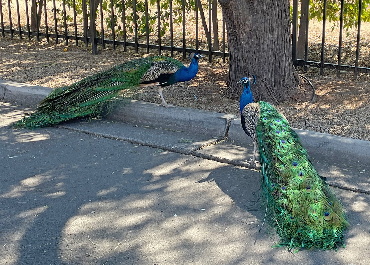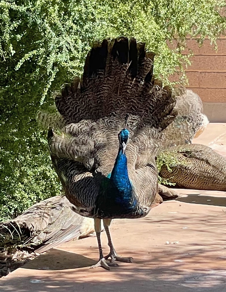 Right around the corner from the ranch was the Glendale Library. I know, that seems like a strange place to take your tourist-friends. But we didn’t go inside, we stayed in the parking lot to see the wildlife – the Peacocks. There were probably about twenty in all and they strutted around like they owned the place. If we got too close they would just sashay away, acting oh, so cool!