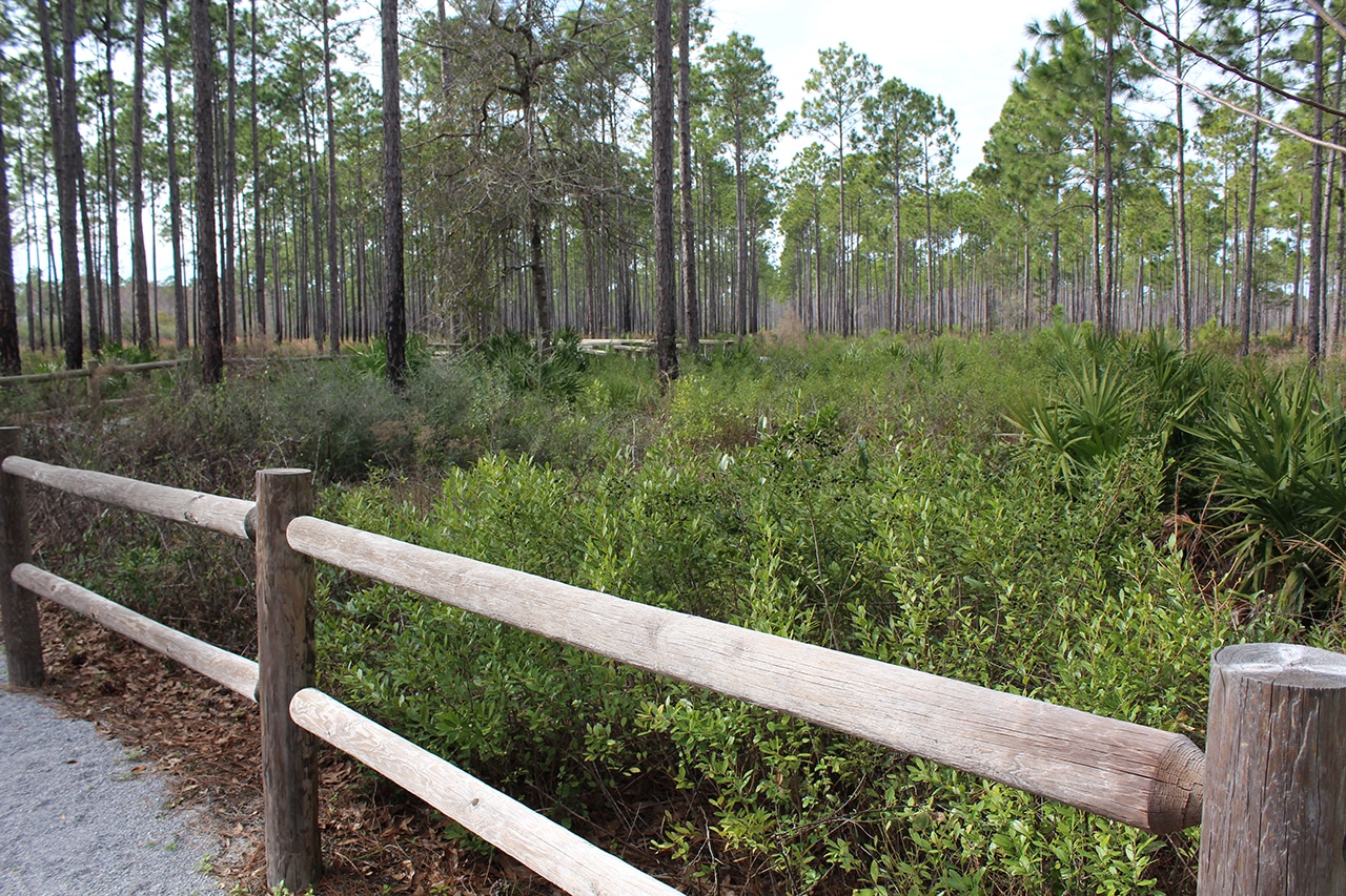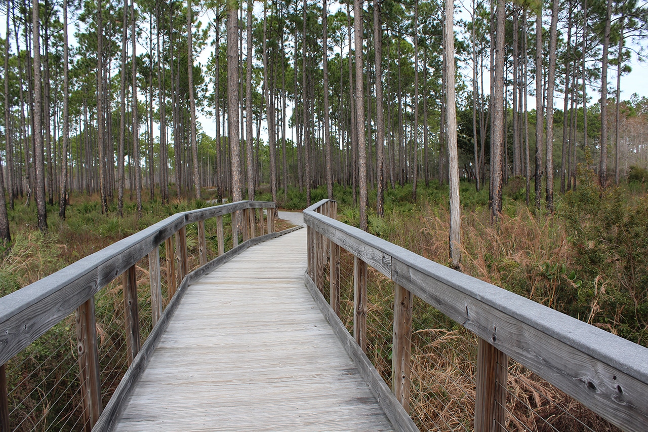 We continue our stay in Panama City Beach (PCB) with a couple of day trips to see some surrounding areas. Conservation Park was less than ten minutes from our condo and since the weather had warmed up significantly, we took advantage of our good fortune and decided on a walkabout. What we found was a beautiful area that was created “in cooperation with the Florida Department of Environmental Protection for the enjoyment of hikers, bikers, and nature lovers” – just up our alley!